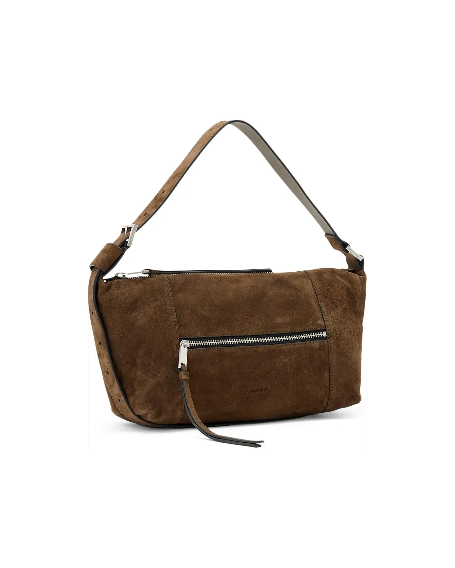 • Slouchy chic meets streetwise edge, carrying the AllSaints™ Vega Suede Shoulder Bag. Crafted from ultra-luxe butter-soft suede with a slouchy silhouette that effortlessly nails that off-duty model vibe, this bag is made to be seen. The dual zip feature with long, chunky pullers adds a dose of cool-girl utility, while the soft, wide strap sits comfortably on your shoulder, whether you're running errands or making an entrance. The single roomy compartment with three interior pockets keeps your daily essentials organized without sacrificing style. Finished with a zippered closure for extra security and an effortlessly elevated look, it's the kind of bag that transforms any outfit into an outfit.