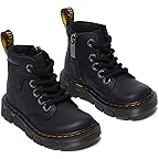 - The contemporary Dr. Martens® Kid's Collection Raffe Boots give Docs attitude for the young rebel, while they are built on a wider ergonomic footbed and designed especially for growing feet. Featuring a rugged Wyoming leather upper with a subtle grain & oily finish and an Ethylene Vinyl Acetate insole with padded tongue & collar, these ankle-high boots offer premium comfort with every step. The lace-up closure with bold 6-eyelet design offers a secured fit and the scripted heel pull tab allows easy donning & doffing. These round toe boots are set on a chunky polyvinyl chloride outsole with an exaggerated tread and extra-flexible construction, with the iconic yellow stitch.