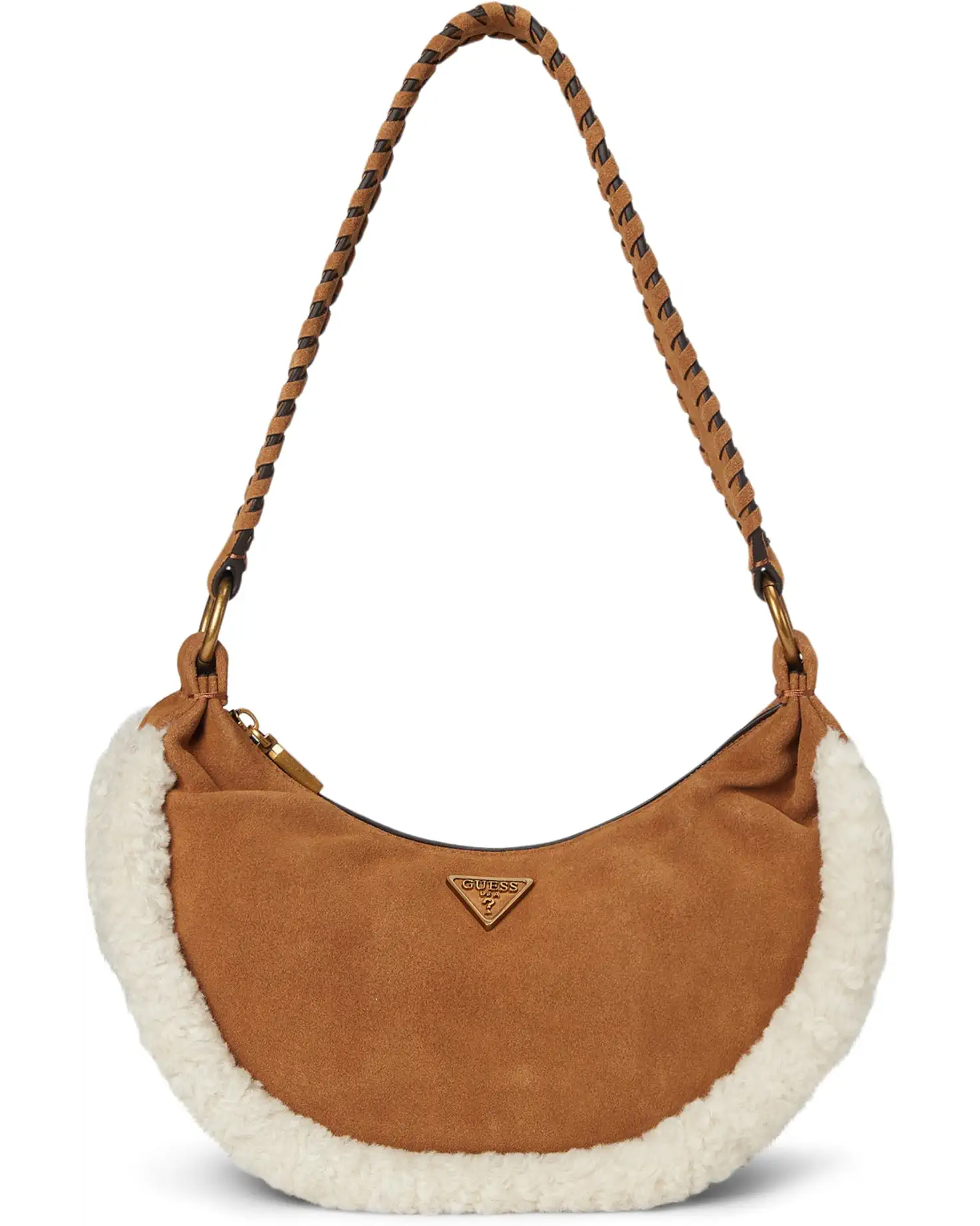 - Stylish and compact, the GUESS® Amita Hobo purse in suede is styled with antique bronze hardware and a shoulder strap. This hobo bag features a zippered top closure that offers quick and easy access. Its interior compartment has a zippered pocket and three card slips. From your party outfits to casual looks, this shoulder purse works with most outfits and styles.