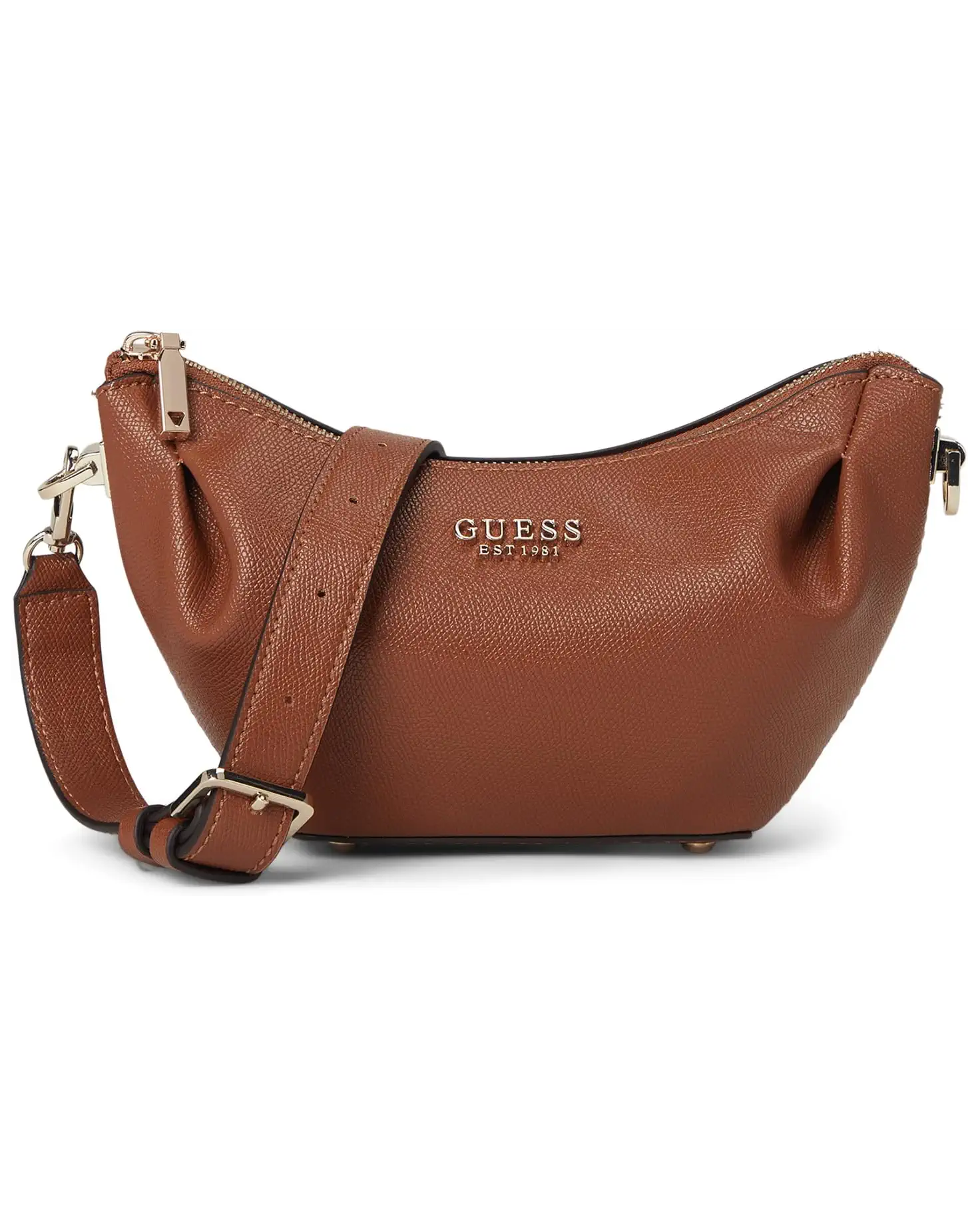 - The GUESS® Amorette Top Zip Shoulder Bag is the statement piece your wardrobe has been waiting for. Crafted from eco double-faced pebble PU with a smooth polyester blend lining, this bag brings together modern with iconic GUESS glamor. The sleek zippered closure opens to a roomy main compartment, perfectly designed with one secure zippered pocket and three card slips to keep your essentials organized. An adjustable shoulder strap ensures all-day comfort and styling versatility, while the polished, shiny gold hardware adds just the right amount of luxe shine. With four pockets to neatly store your daily must-haves, the Amorette bag transitions seamlessly from day to night, making it a true style investment.