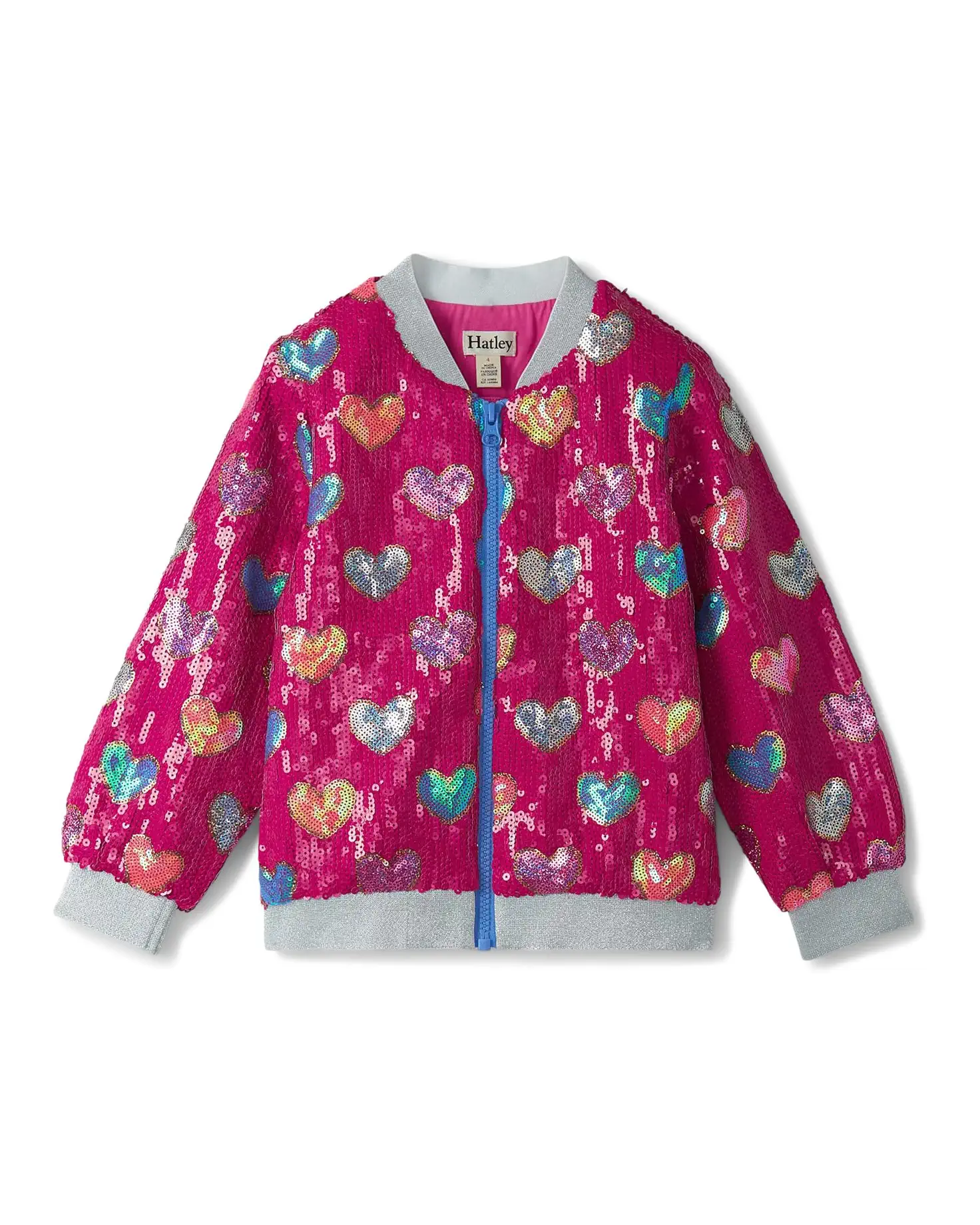 - Featuring shimmery allover heart details, your little one is going to love the comfort and chic details of Hatley® Kids Bomber Jacket. The full-zippered jacket features a ribbed mock neck, long sleeves with ribbed cuffs, and a standard-length silhouette with a straight ribbed hem.