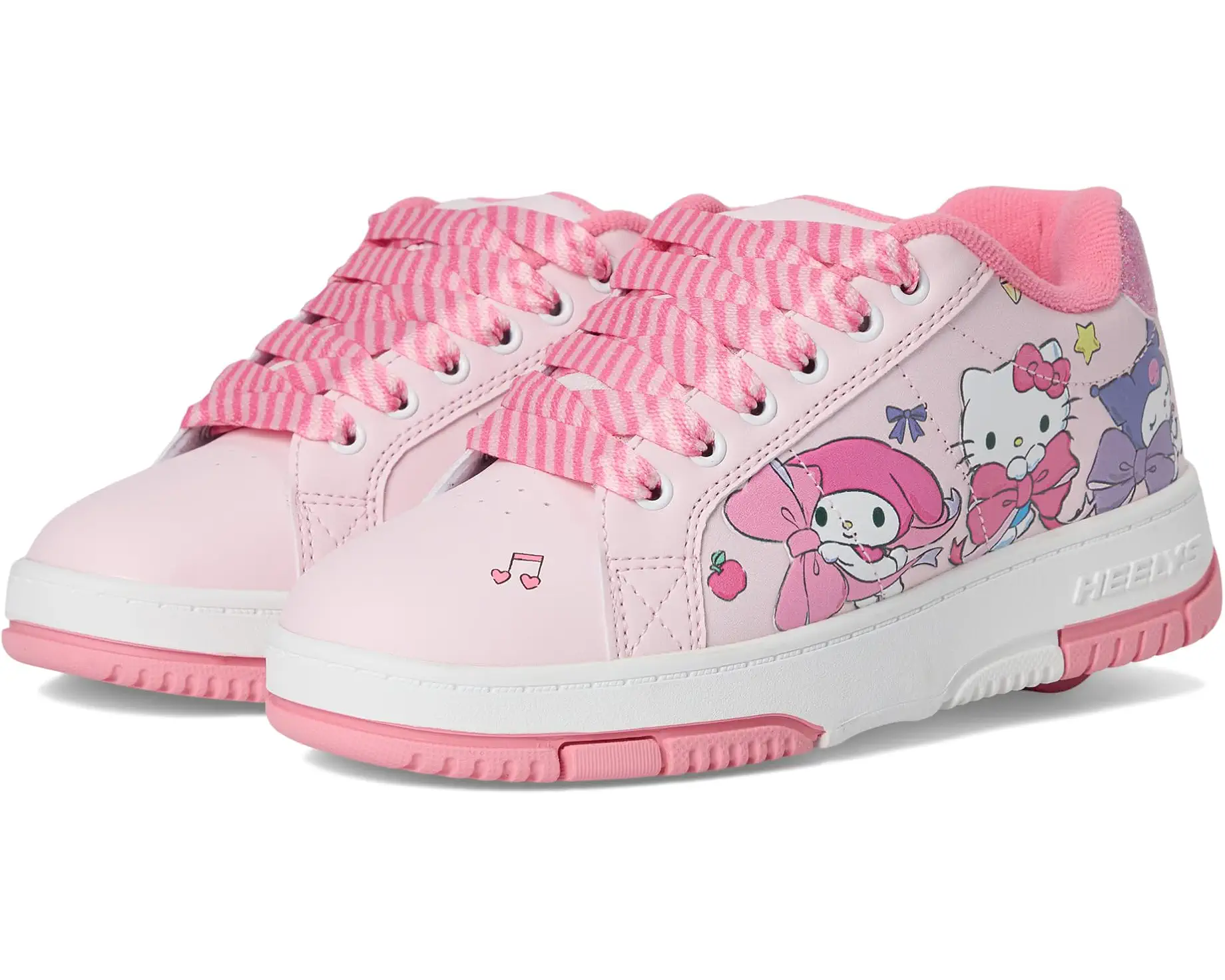 • Heelys and Hello Kitty come together to bring you this unique collaboration! Featuring a faux leather upper, lace-up closure in a round toe silhouette, polyester lining, ethylene vinyl acetate insole, and graphic print throughout.