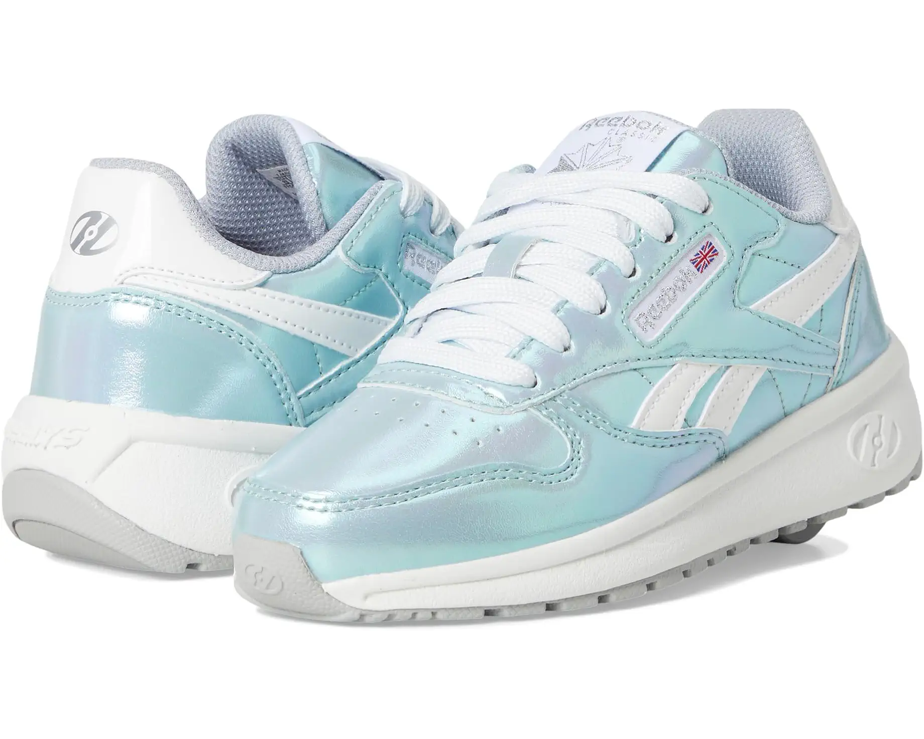 - Let your kiddo cruise the pavement with swagger in the Heelys® Reebok Classic Skate Shoes. Featuring a sleek faux leather upper, breathable polyester lining, and a supportive EVA insole, these kicks bring the comfort of sneakers with the thrill of skates. A rubber outsole keeps it grippy when wheels are up, while the iconic Reebok branding at the tongue, lateral side, and heel tab adds serious old-school cred. The lace-up closure ensures a snug fit, and the round toe design allows for all-day wear, whether they're gliding through the park or strolling the halls. With a hidden wheel in the heel, it's easy to switch from walking to rolling in a flash.