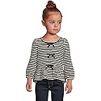 • The Janie and Jack® Stripe Bow Top is where timeless style meets playful elegance. Crafted in a classic fit with a crew neck and long sleeves, it offers all-day comfort and effortless charm. The standout bow design on the front adds a touch of sweetness, while the ruffle skirt design on the hem brings a fun, flouncy finish perfect for twirling through her day. Designed with a convenient pull-on style, it's as easy to wear as it is adorable.