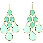 - 14K gold-plated brass earrings feature a triad of teardrop-shaped semiprecious stones.