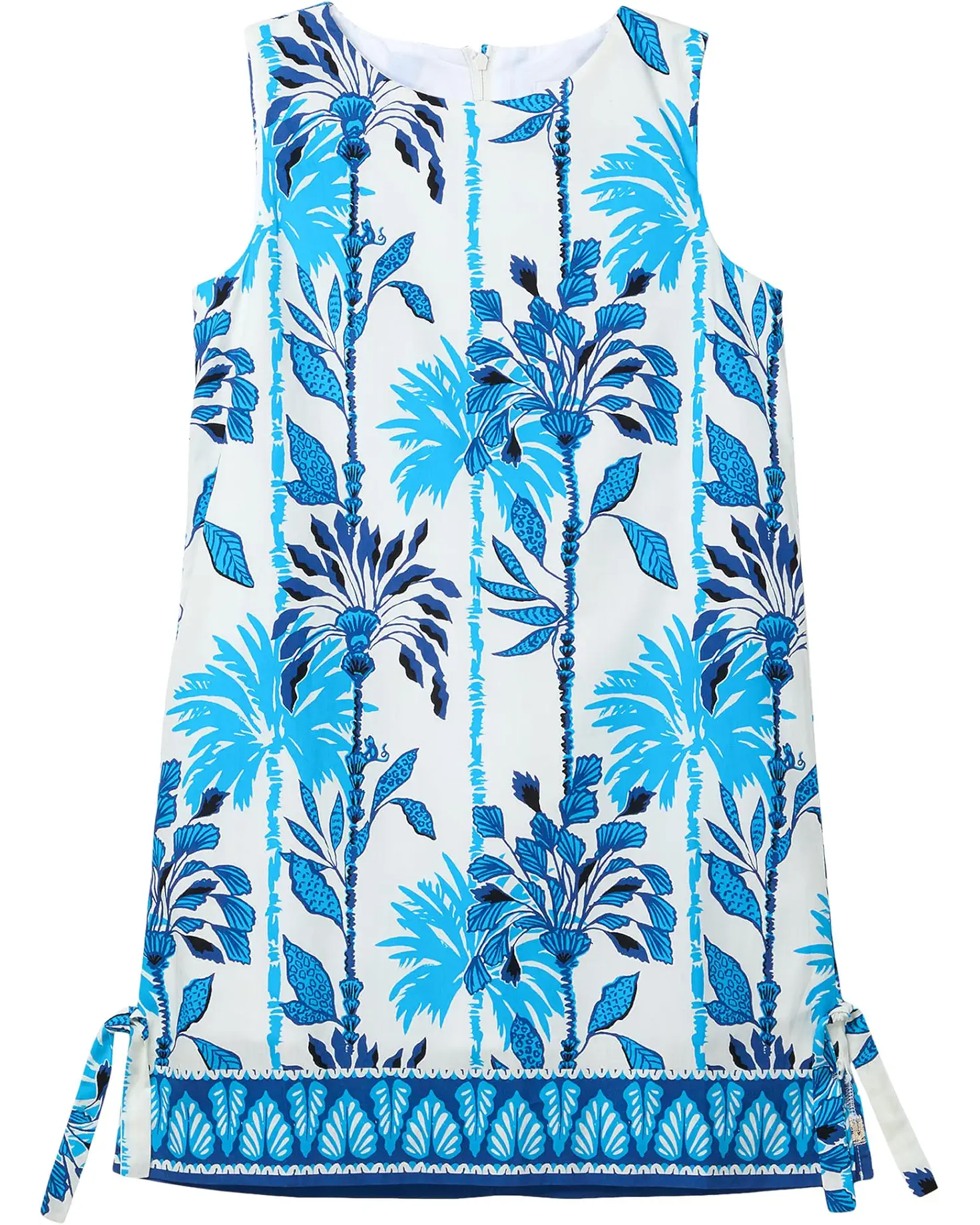 - Bright, bold, and beautifully timeless - the Lilly Pulitzer® Kids Little Lilly Classic Shift is the ultimate mini-me moment of sunshine style. Designed with playful charm and everyday elegance, this sleeveless shift dress features a polished jewel neckline that frames the face with effortless grace. Falling above the knee for a breezy, comfortable fit, it's finished with signature hem bows and side vents for a darling twist that's both fun and functional. The back zipper ensures easy dressing, while the fully lined interior adds comfort and coverage for all-day wear.