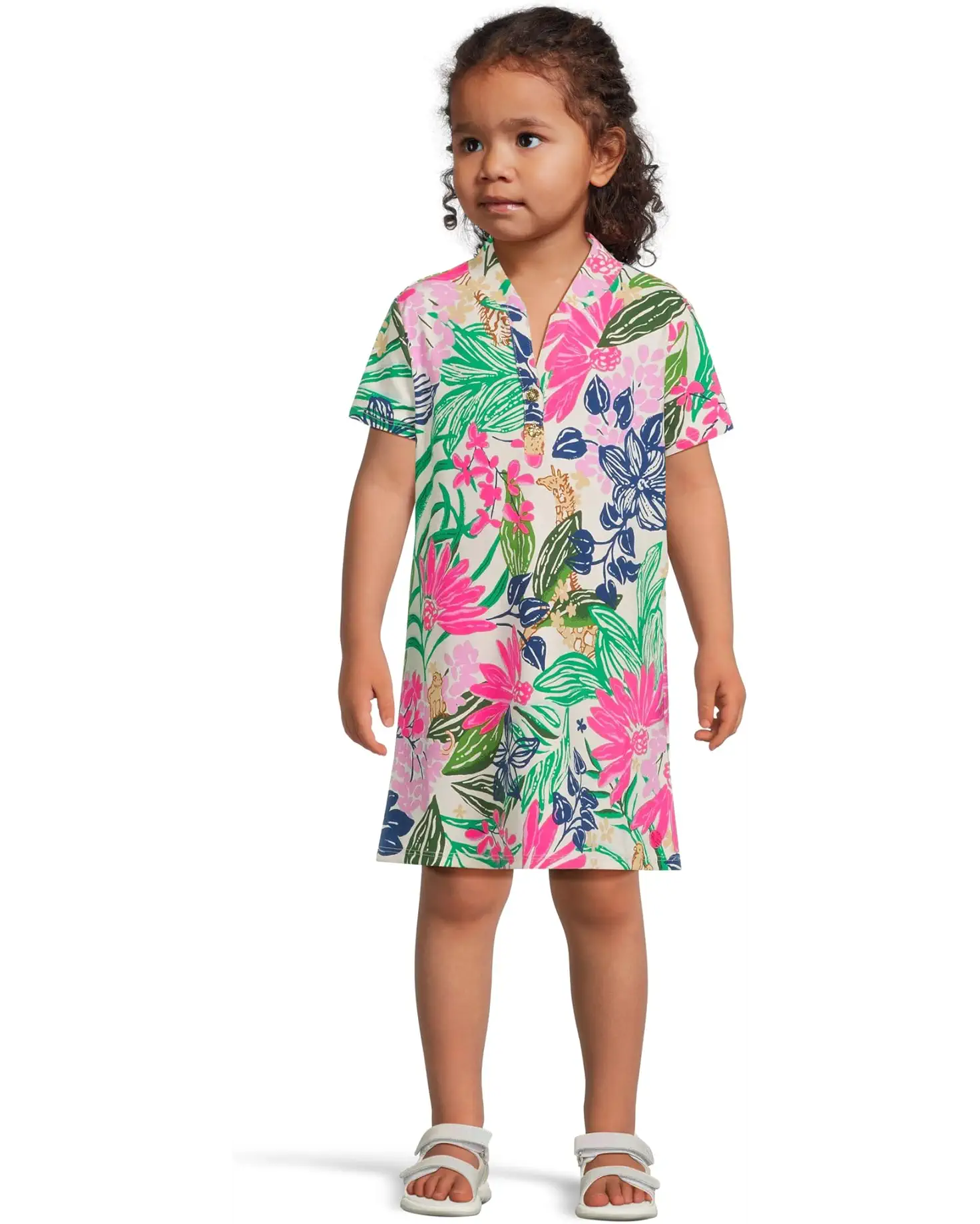 • Give her some warm weather vibes in the Lilly Pulitzer® Kids Mini Love Active Dress. This pull-on style dress features an A-line silhouette, front placket, stand collar, allover print, and separate shorts with pocket.