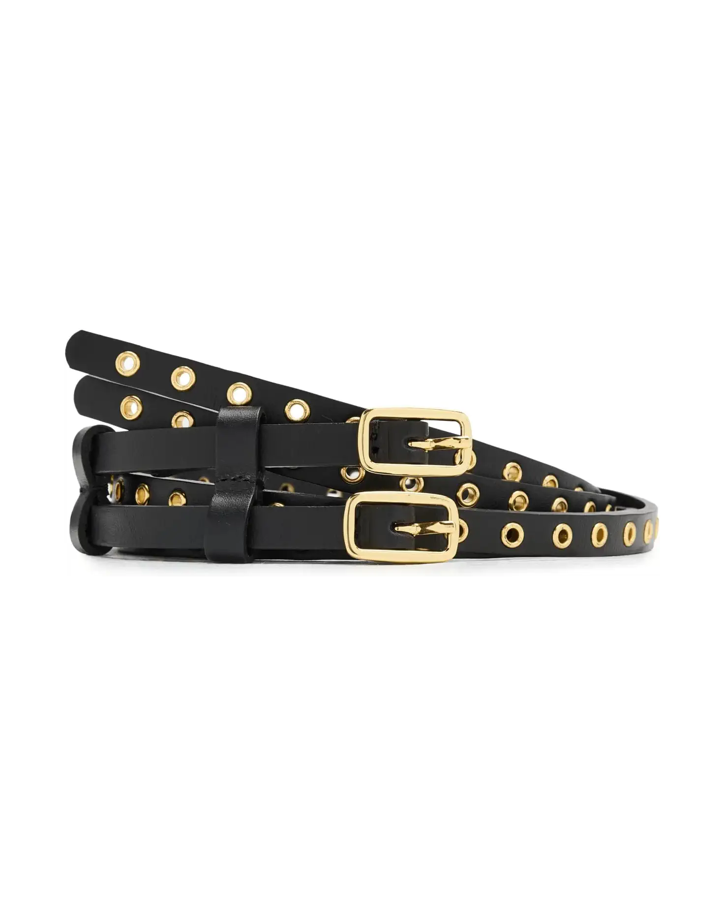 - The Madewell® Grommet Belt is the ultimate accessory to elevate your outfit! This stylish double belt features two slim bands connected by a keeper and adorned with goldtone grommets for an edgy touch. With a single-prong buckle closure, this belt is not only fashionable but also practical.