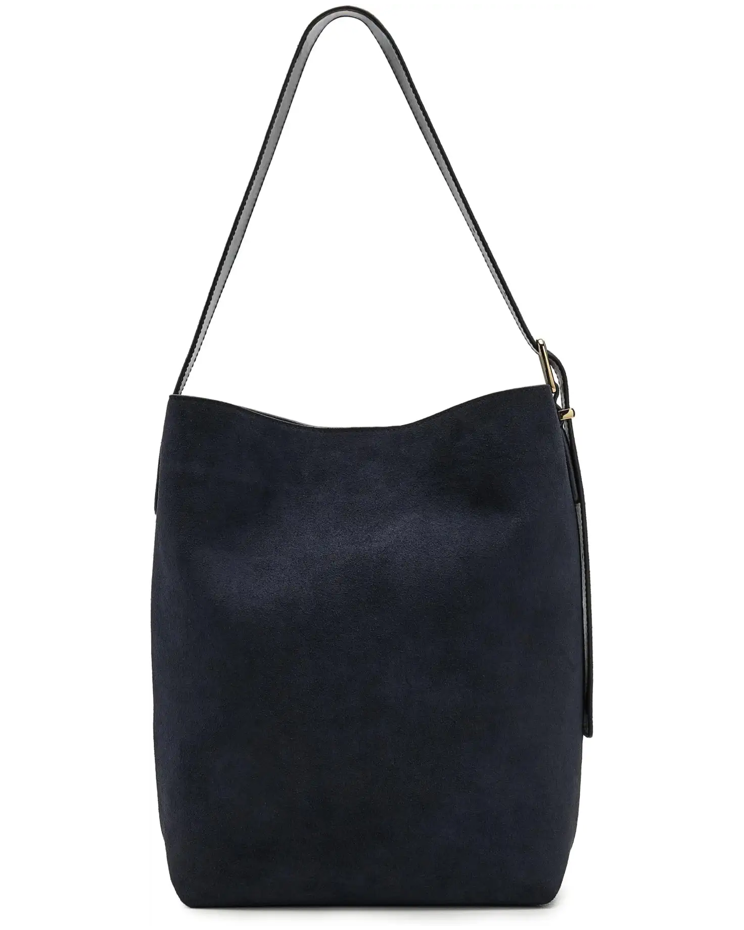 • This bestselling leather bag collection is cool, modern and quietly luxe. With a magnetic closure and interior pocket, this suede bucket tote is perfectly sized to hold up to a 15" laptop, water bottle, phone, wallet and keys-plus it has an adjustable shoulder strap. It's so good, it's Essential.