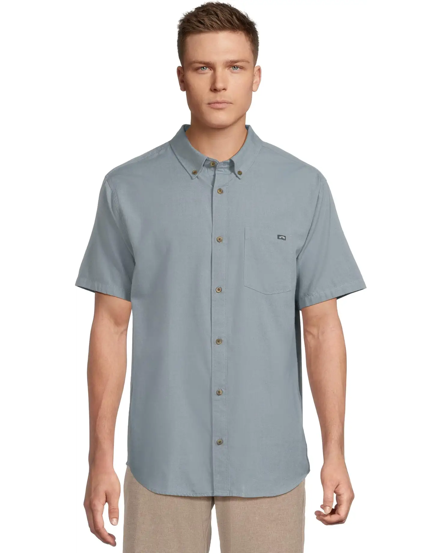 • Ace the formal appeal wearing the stylish and sophisticated Billabong® All Day Short Sleeve Shirt. The button-down collared shirt features a full button-front closure, short sleeves, a patch pocket on the left chest, and a slightly curved hem.
