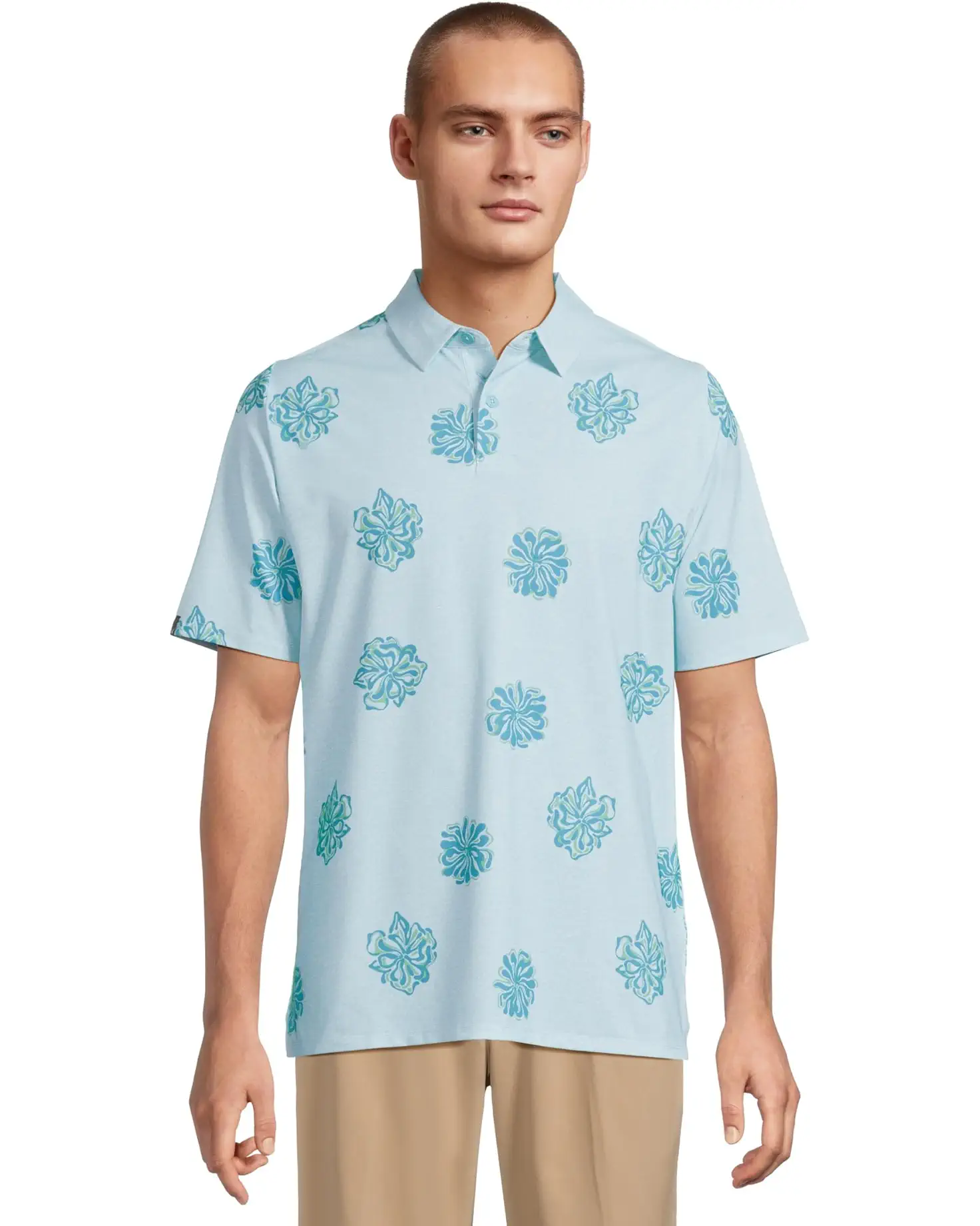 - The Callaway® Bunker Floral Polo shirt features Opti-Dri™ technology that wicks away moisture to keep you dry. Styled with an allover floral print, this printed shirt is styled with short sleeves, a collared neckline, and a straight hem. Its stretch fabric offers a full range of movement. This button-down polo is a great choice to match your casual, laid-back style.