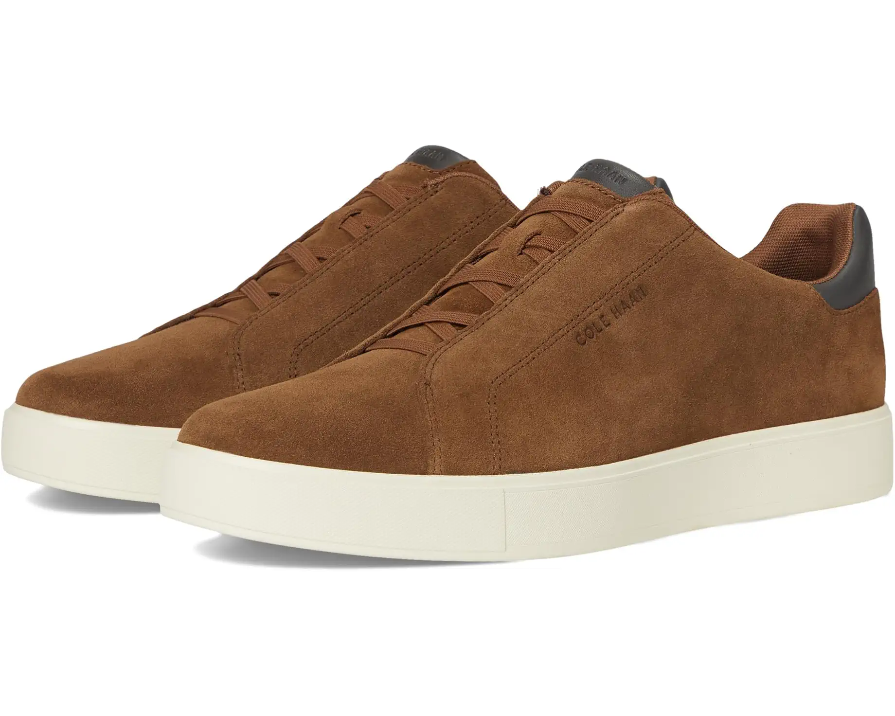 • Cole Haan® Grandpro Luxe Slip-On Sneakers unlike the sea of white bottom, dress sneakers in the marketplace, utilize a rubber cup sole construction with a channel that allows us to play with textures in the sole. Beautifully crafted upper with a slip-on construction. Stretch laces allow for easy on-and-off use. The low-top sneakers feature textile lining, leather insole, and stretchable laces for easy on and off use.
