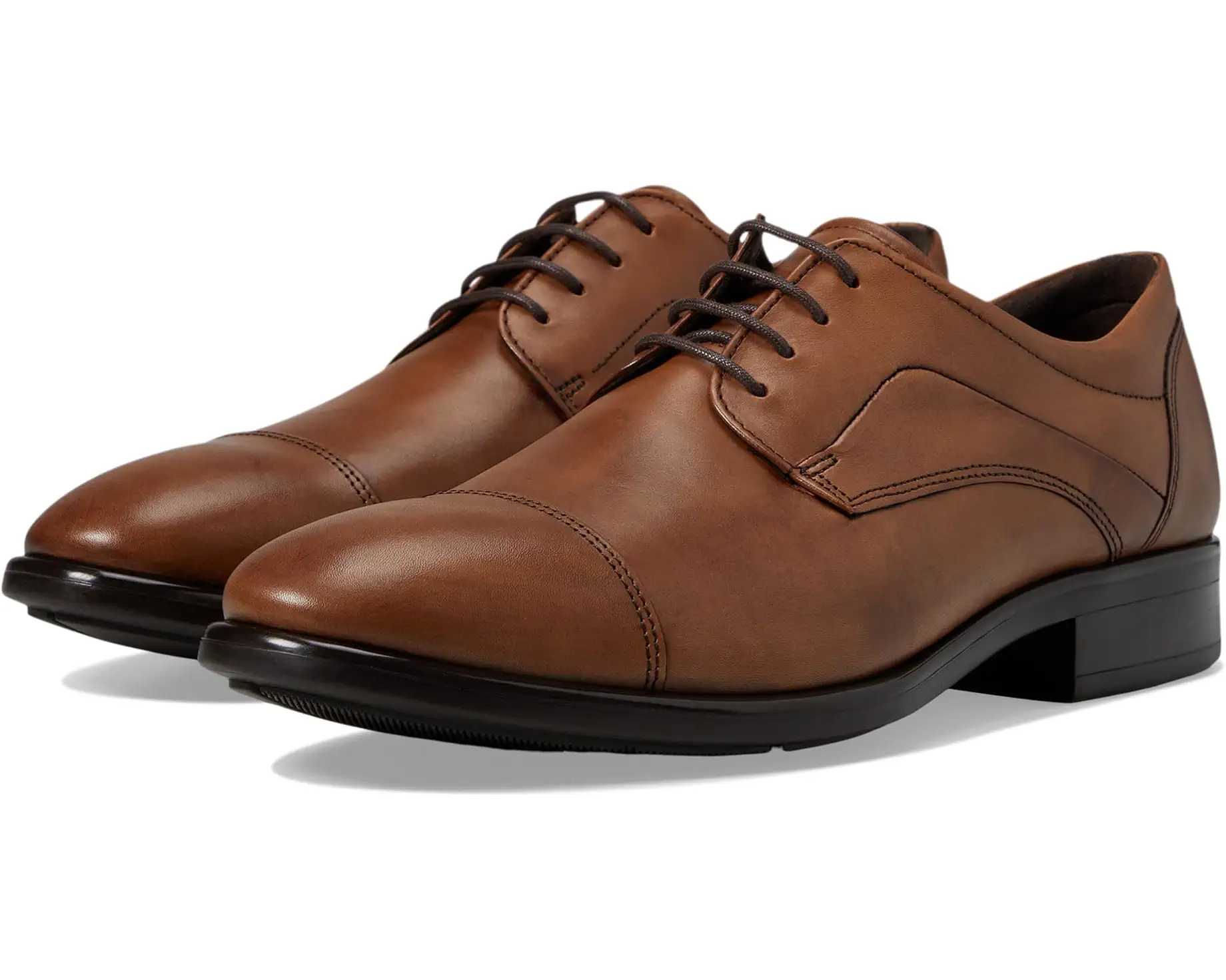 - Made on a sleek new European last, the ECCO® Citytray Cap Toe Tie derby features an elegant toecap and high-quality blind stitching, which elevates the overall silhouette. Crafted from full grain leather with textile laces that can be easily adjusted for a secure fit.