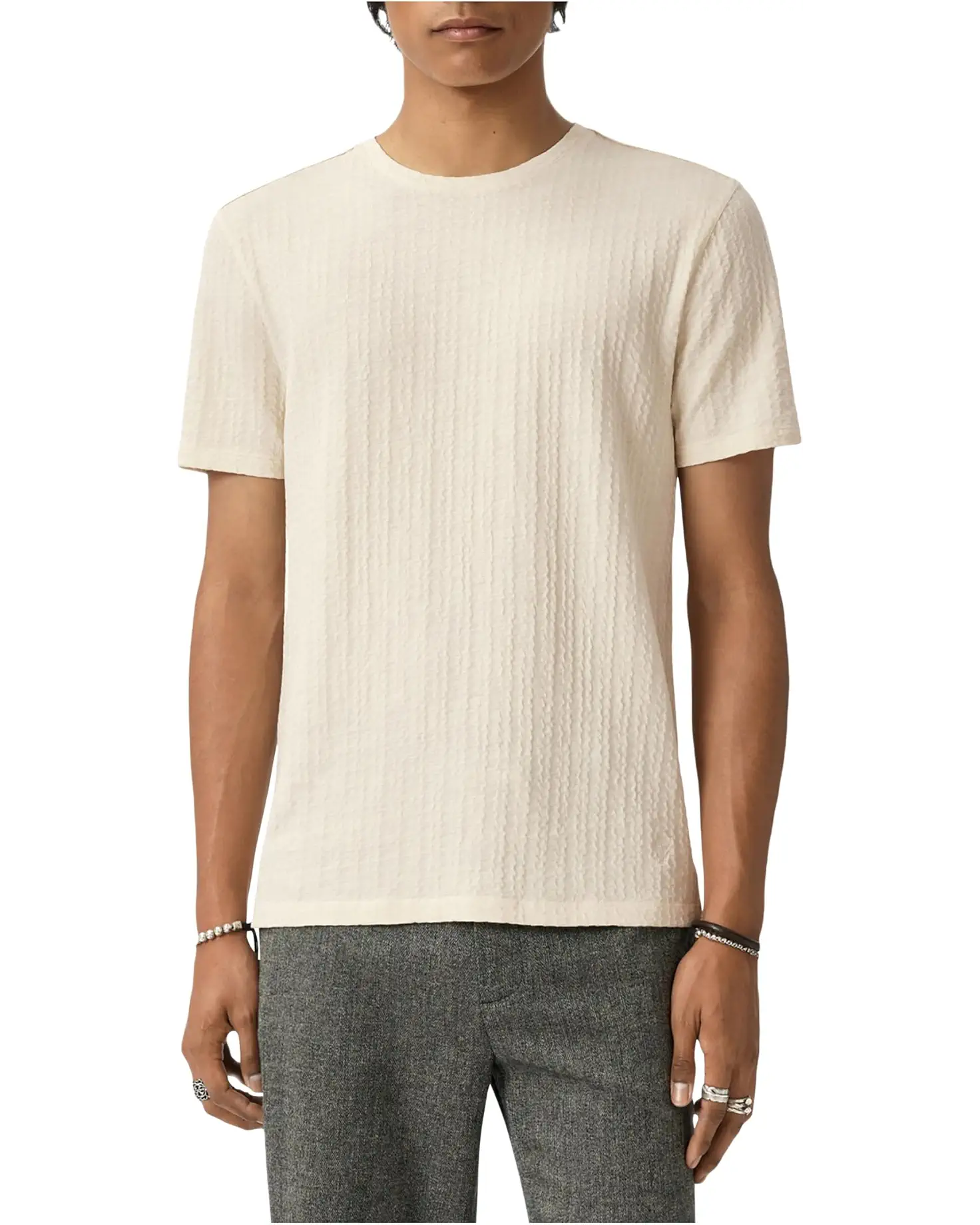 • A refined take on the classic crew, the John Varvatos™ Brasse Crew K7009W25 Tee is a short sleeve style, knit with a custom chain-inspired stitch that mimics the dimension of a traditional cable. Detailed with a crew neck, piped shoulders, a straight hem with subtle side slits, and tonal logo embroidery, it's finished with just enough stretch for structure and ease.