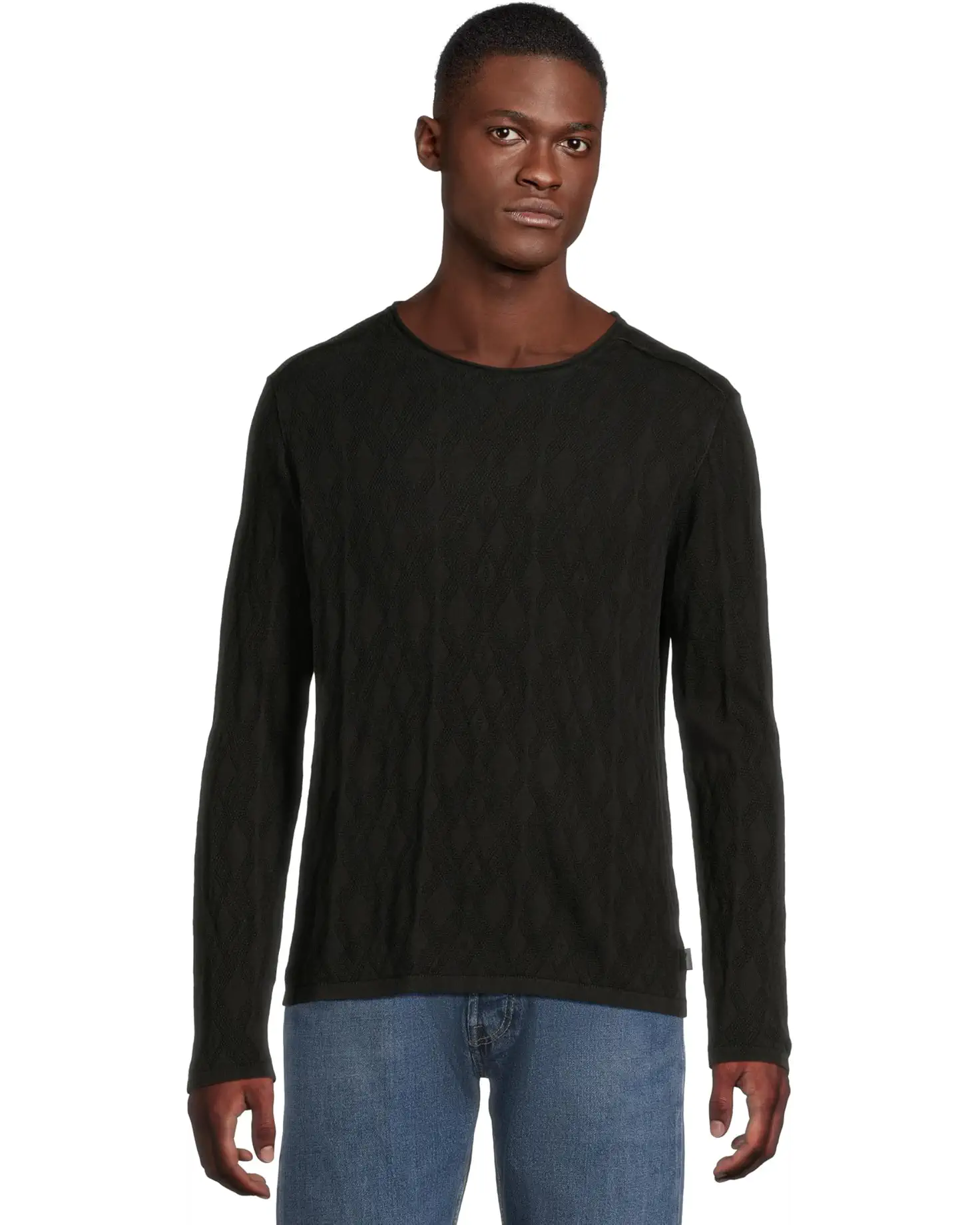 • The Brycen Crew features a geometric jacquard stitch in a broken argyle pattern, brought to life through a vintage wash that enhances its dimensional texture. Crafted in mercerized organic cotton, it's finished with a subtle roll neck and forward shoulder seams for a polished but laid-back profile.