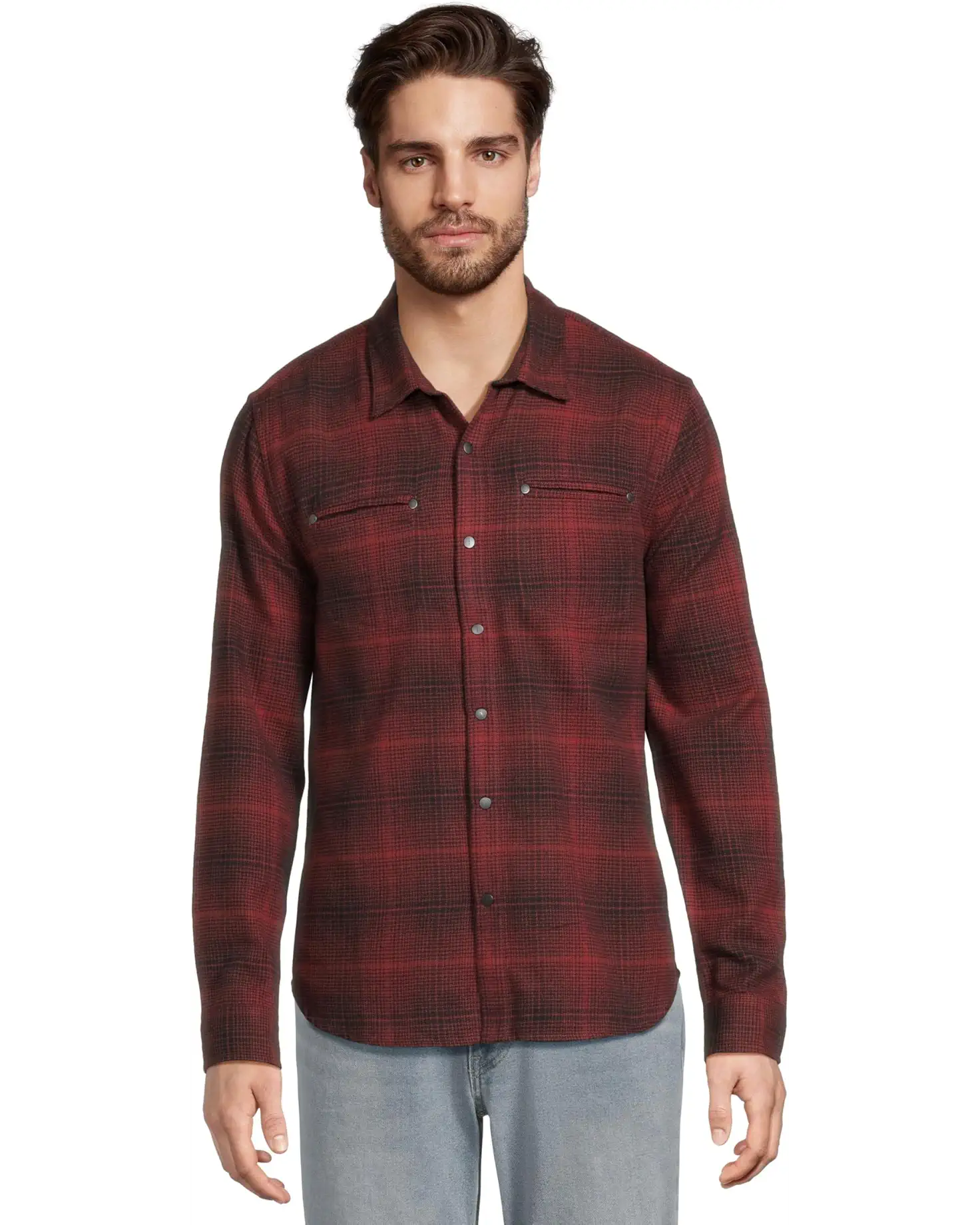 - The John Varvatos™ Dario Shirt W976W25 offers a soft texture with subtle structure, making it ideal for year-round wear. The classic plaid pattern is elevated by rivet detailing at the chest pockets, lending a utilitarian edge to its regular fit silhouette.