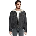 - The cozier counterpart to the brand's Original Trucker Jacket, the Levi's® Men's Relaxed Fit Plaid Trucker jacket is constructed with durable denim and lined with fuzzy sherpa for extra warmth. Iconic and instantly recognizable, this jean jacket has been a symbol of individual self-expression for decades. Its buttoned front closure features Levi®'s branded metal buttons and tapered "V" stitches that make it instantly recognizable. This button-down jacket is styled with long sleeves, a collared neckline, and a straight hem. Featuring an allover plaid pattern, this iconic essential truly looks good on everyone, even when sized up or down.