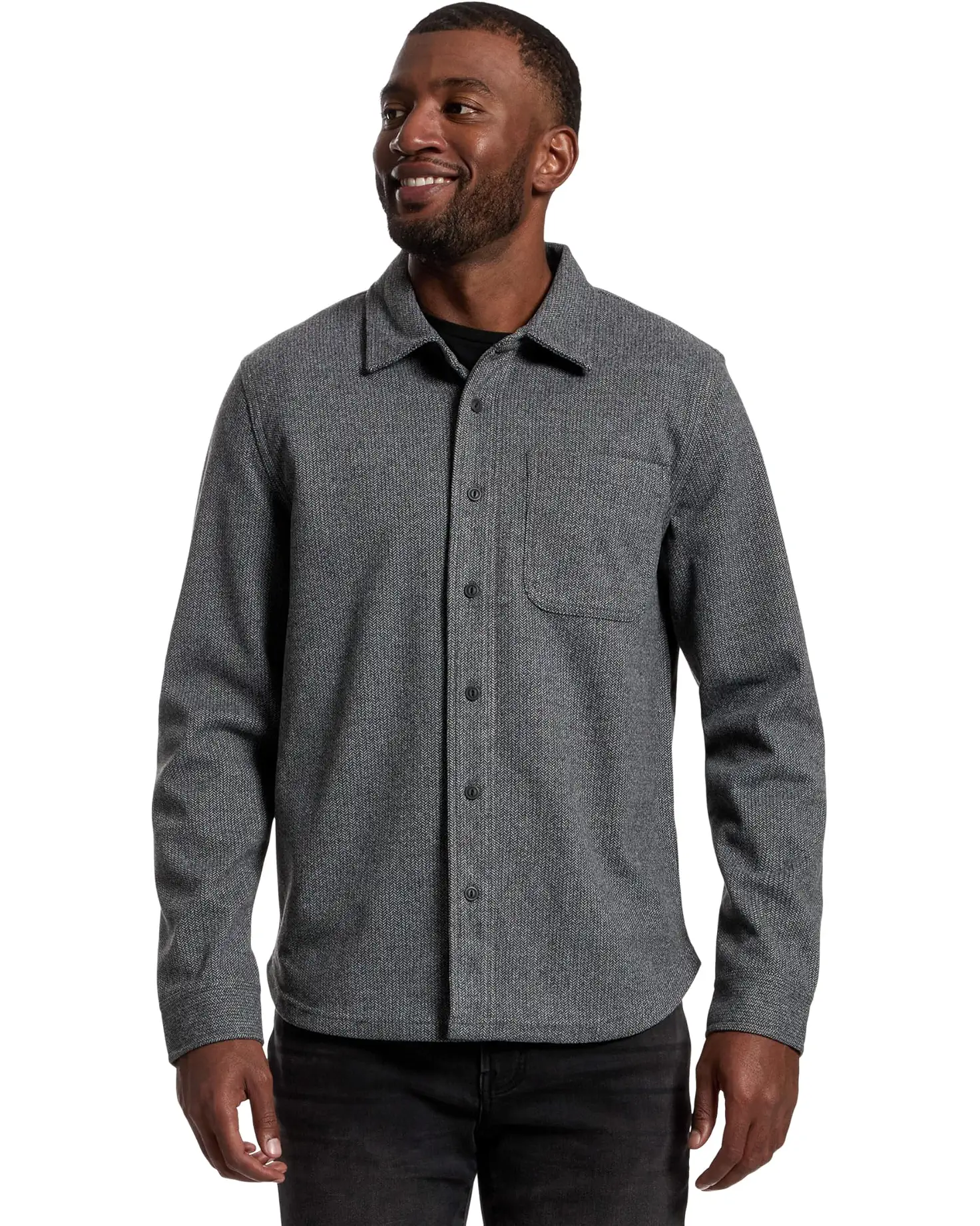 • Upgrade your everyday look wearing the Liverpool™ Los Angeles Long Sleeve Button-Up Herringbone Knit Shirt, a perfect blend of style and ease. Crafted from a brushed herringbone knit jacquard, this shirt offers a soft, structured feel that keeps you comfortable from morning coffee to evening strolls. Its classic fit, collared neck, and long sleeves with buttoned cuffs create a timeless silhouette, while the button-front closure adds easy, polished functionality. Dual chest patch pockets bring a refined, practical touch, ideal for small essentials or effortless layering.