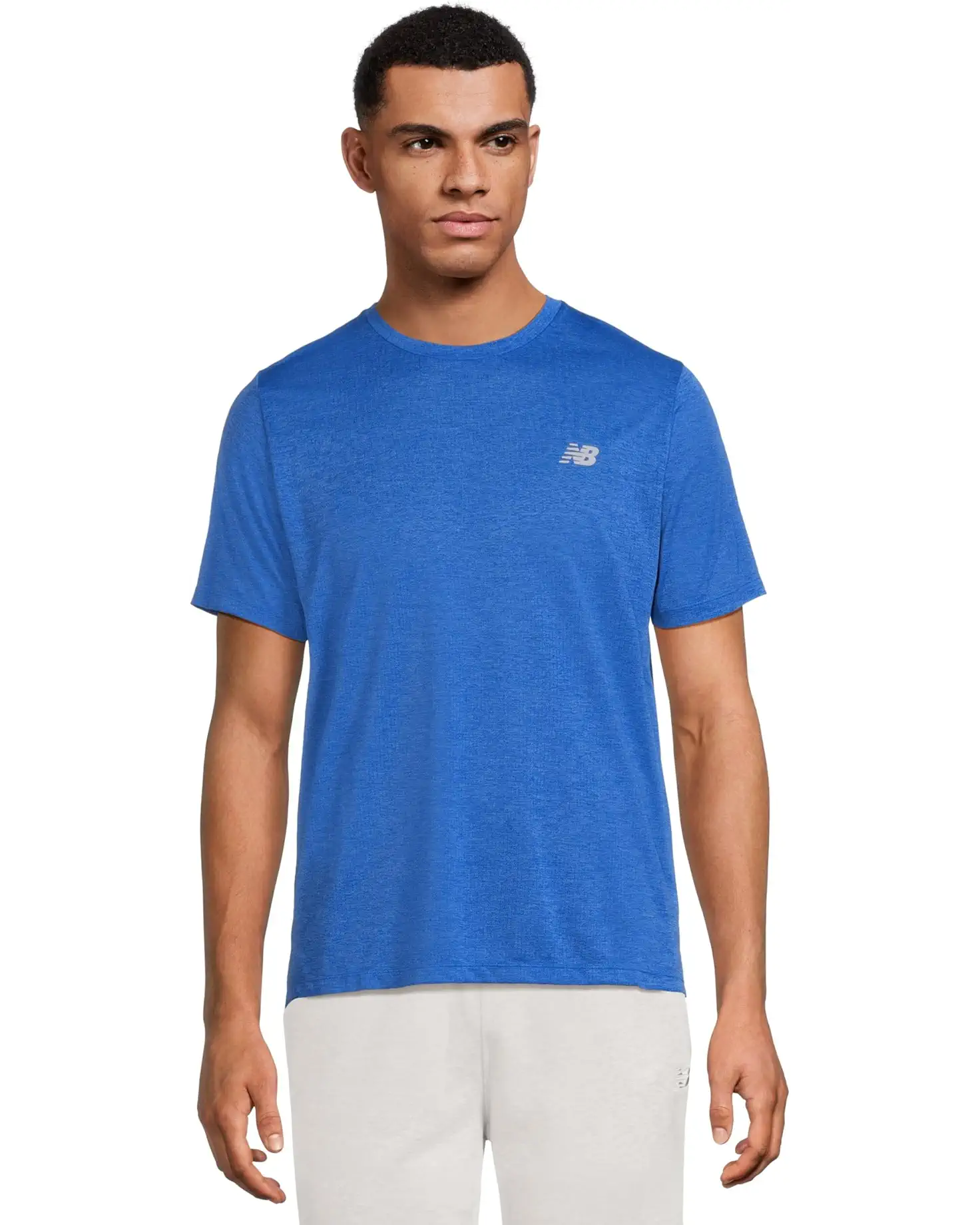 • The New Balance Men's Athletics T-Shirt is crafted from ICEx fast-drying technology that helps you stay cool by promoting your body's natural thermal regulation. The tee features crew neckline, graphic print brand detailing on the left chest, and pull-on construction making it perfect for both professional and casual occasions.
