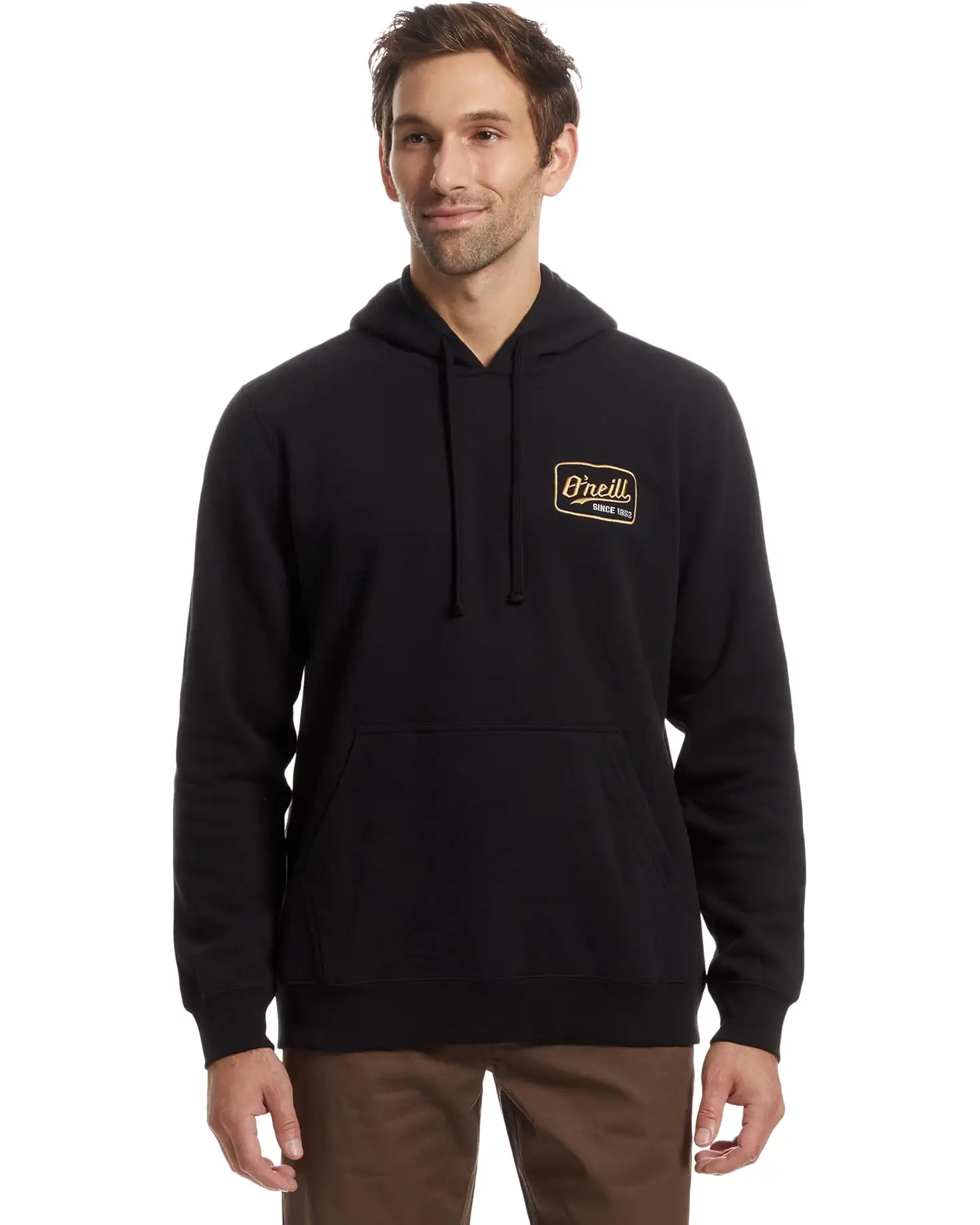 • Relax in the comfort and soft hand feel of the O'Neill® Fifty Two Cliffs Pullover Sweatshirt, crafted from a cotton polyester butter fleece fabric. The sweatshirt features a hooded neck with a drawstring closure, long sleeves with ribbed cuffs, a kangaroo pocket on the front, and a straight ribbed hem. The cool left chest embroidery and back screenprint adds a stylish touch to the look.
