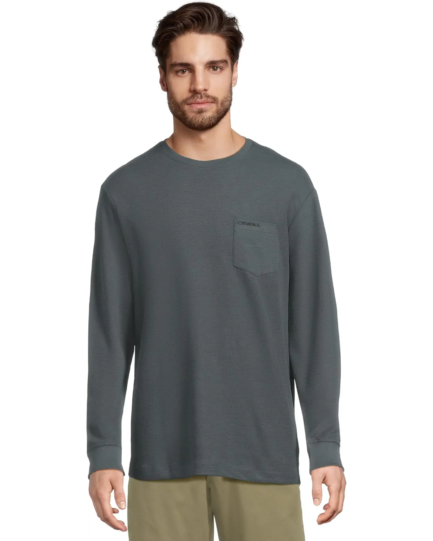• Style up your look while experiencing enhanced comfort wearing O'Neill® Overland Thermal Shirt, crafted with 230 gsm cotton thermal. The pull-on style sweatshirt features a crew neck, long sleeves with ribbed cuffs, patch pocket on the left chest with brand label, and a straight hem with side seam label.