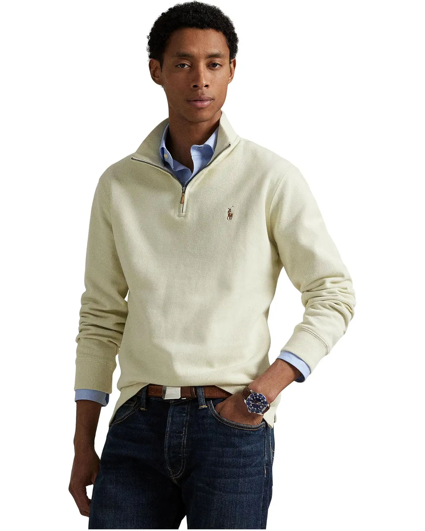 - Our Estate-rib fabric gives this Polo Ralph Lauren® Estate- Rib Quarter Zip Pullover a super-soft hand, thanks to lightweight cotton that's both peached and brushed. It features a mock neckline with a quarter-zip placket, long sleeves with banded cuffs, and even vented hem.