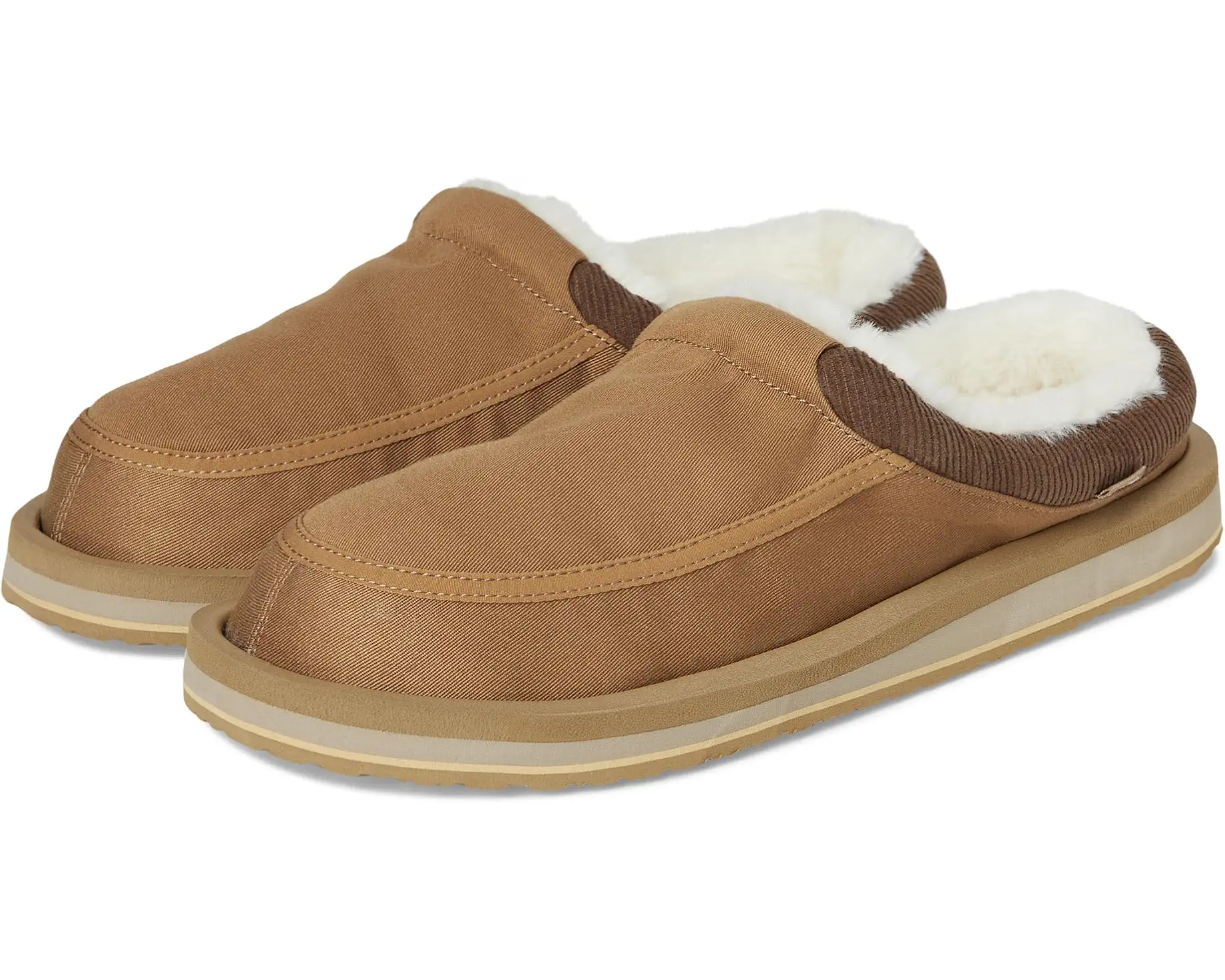 - The Sanuk® Donny Cozy shoes are made of a recycled polyester upper, offering a pop of blanket. Their polyester faux fur lining provides long-lasting warmth, while the contoured, high rebound soft top rubber footbed ensures barefoot-friendly wear. These slip-on loafers feature a traditional raised toe seam, elastic gore, and backless construction for easy on and off.