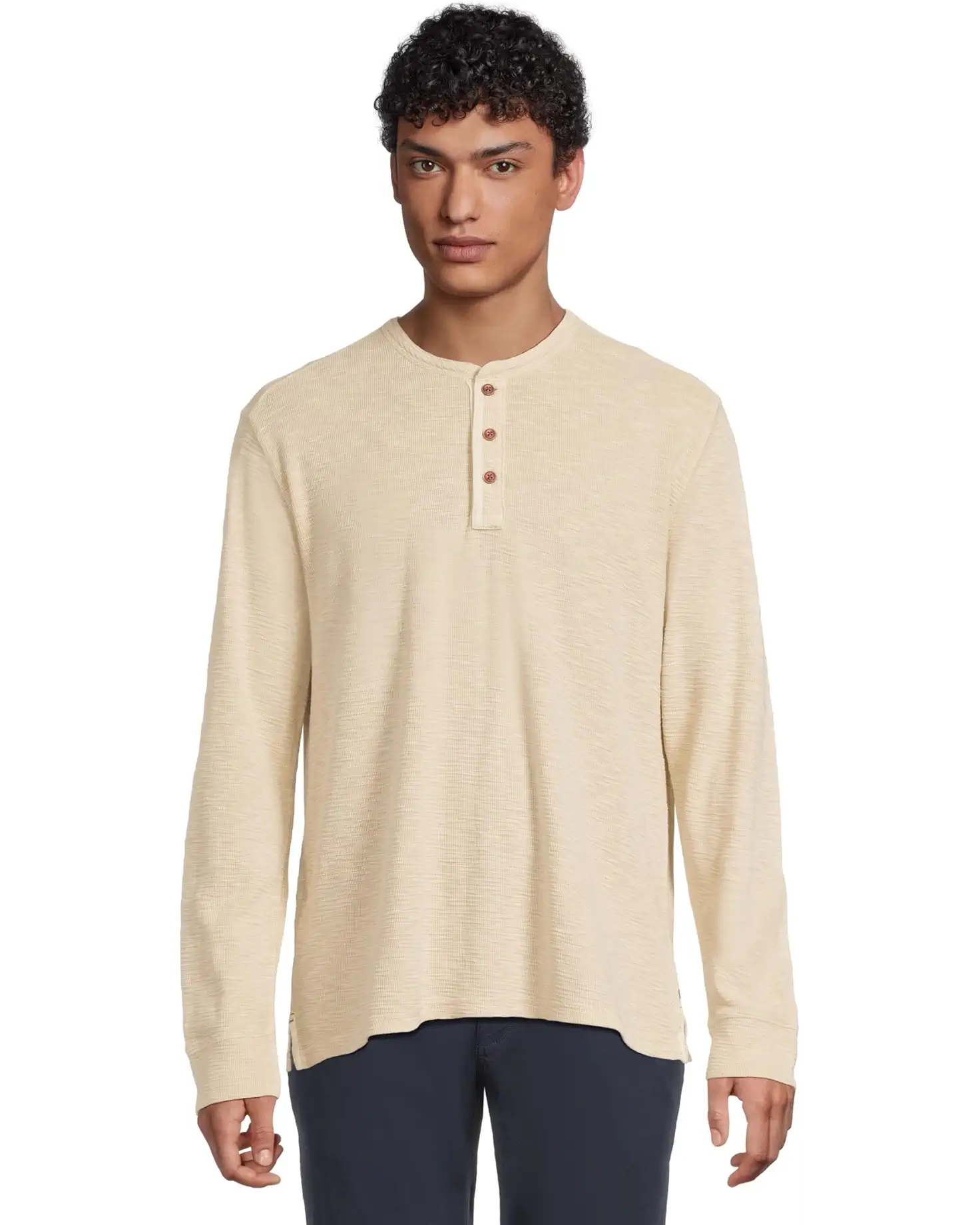 • Experience the goodness of comfort wearing the Tommy Bahama® Port Oasis Henley Long Sleeve. This long-sleeve solid pigment dyed waffle slub henley shirt comes with woven trim details, three-button placket, rivet, and bartack trim. It features a crew neckline and a straight hem that comples the look.