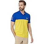 - Look stylish and sophisticated wearing U.S. POLO ASSN.® Short Sleeve Slim Fit Colorblock Athletic Jersey Knit Polo Shirt. This pull-on style polo shirt features a slim-fit silhouette, a collared neck with quarter-button closure, short sleeves, and a straight hem that gives the apparel a neat finish. While the stylish color-block pattern adds an exquisite touch, the brand logo detail on the left chest adds authenticity.