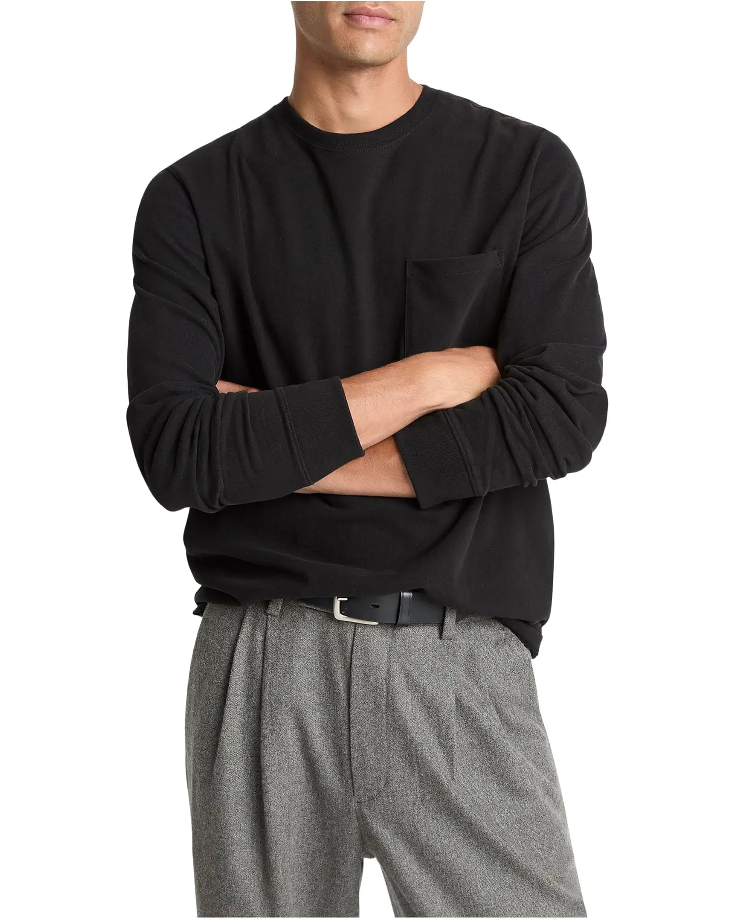 - Softness meets sophistication - your new go-to staple! Vince® Sueded Jersey Long-Sleeve Pocket Crew. Featuring a timeless crew neck, classic fit, and convenient pull-on design, this wardrobe essential redefines comfort. Crafted from ultra-soft sueded jersey, it delivers a luxurious feel that's perfect for any season. The long sleeves and versatile silhouette make it ideal for layering or wearing solo, while the understated chest pocket adds a touch of effortless charm.