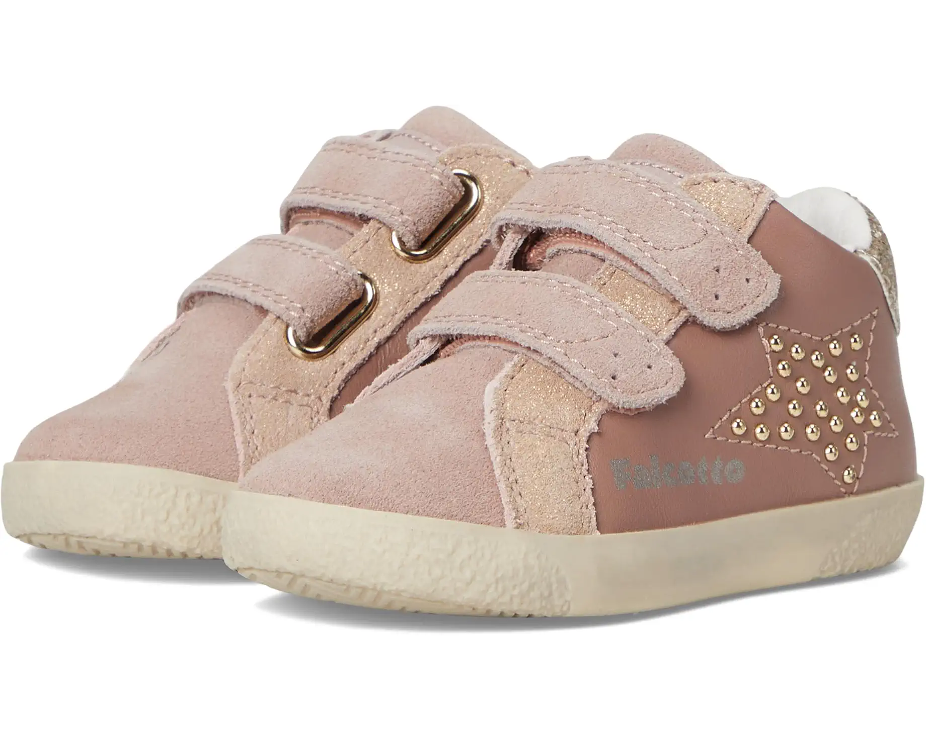- The Naturino® Falcotto Mauvis VL. Shoes combines casual comfort with a bit of style. The low-top shoes come with a suede upper with glitter detail & studded star detail, leather lining, and a leather insole. The double hook-and-loop closure ensures a secure fit.