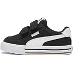 • Style your look in the flawless and classic design of the PUMA® Kids Court Classic Vulc Faux Suede Hook and Loop sneakers with contrasting shank and branding detail.