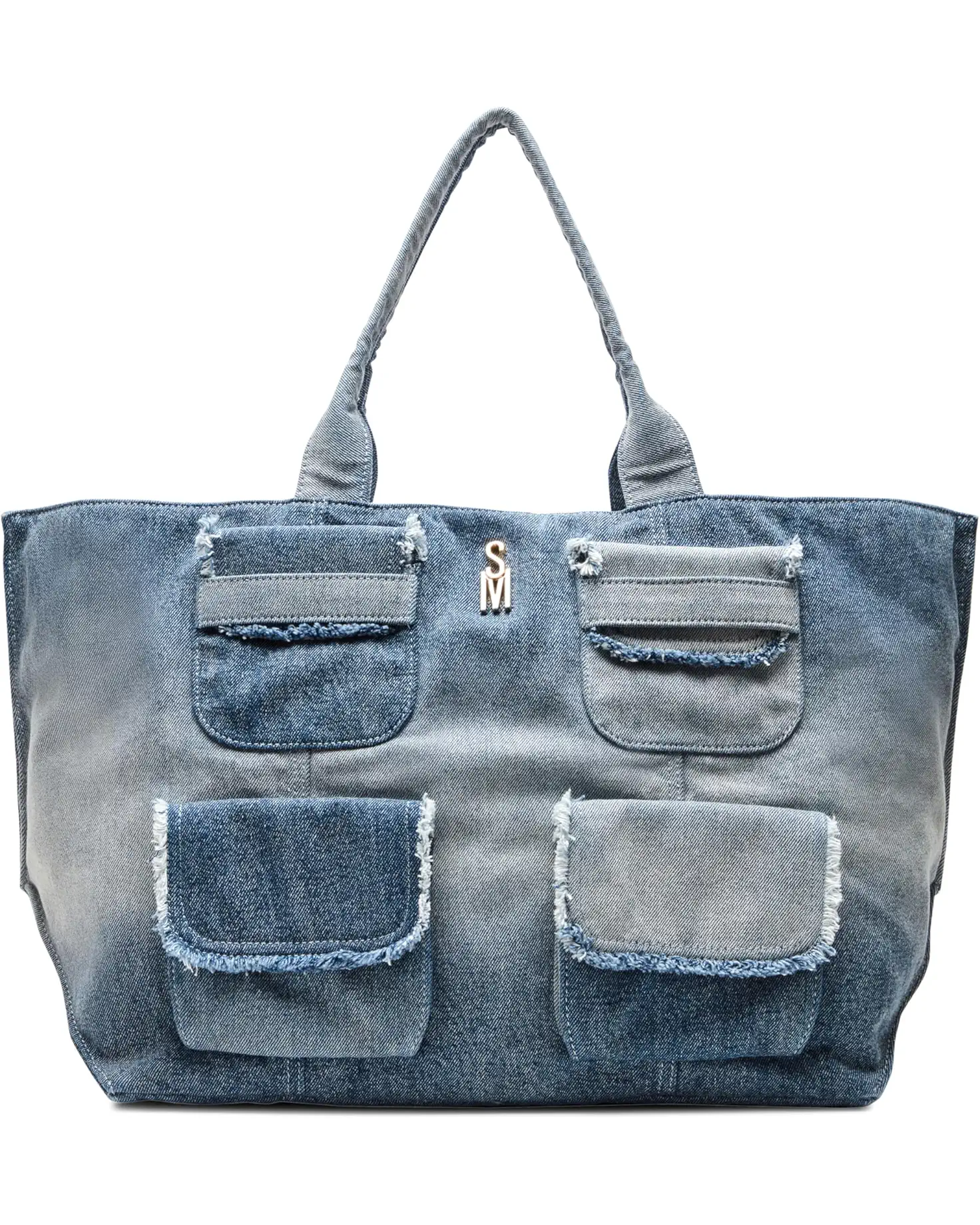 - Crafted from polyester, the Steve Madden® Banisia-D Xl Cargo Pocket Tote elevated your everyday stylish look. This large denim cargo tote features dual top carry handles, open top silhouette, and four exterior pockets.