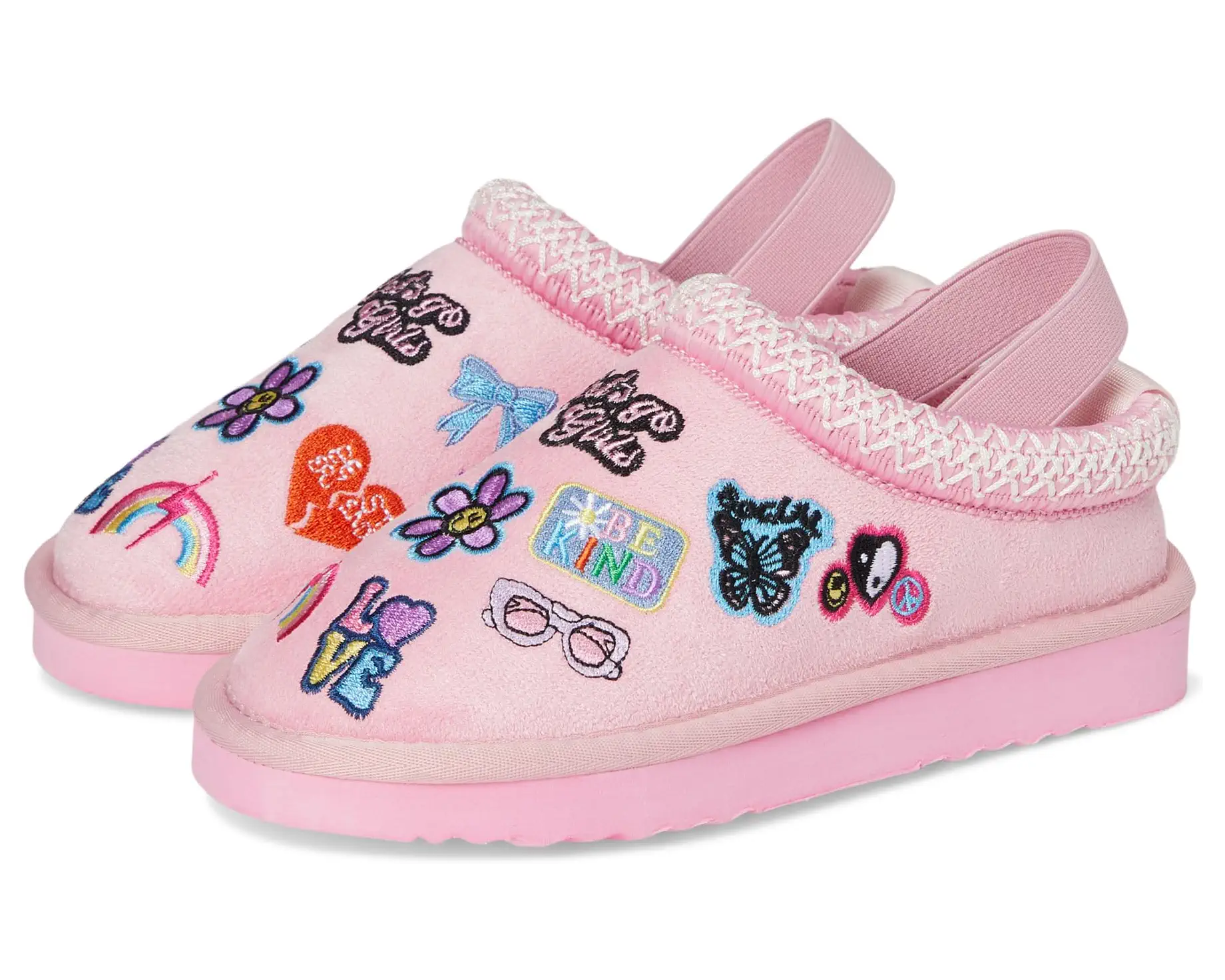 • Cozy meets cool in the Steve Madden® Kids Mads shoes, playful slip-on boots covered in colorful embroidered patches. They are designed with a rubber insole and synthetic rubber lining. The elasticized slingback strap offers a perfect fit. With their soft suede upper and a cushioned rubber outsole, these ankle-high boots are perfect for lounging or making a statement on the go.