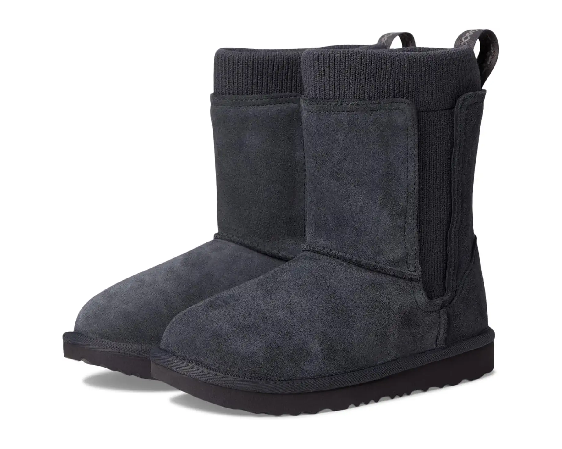 - A favorite go-to for chilly weather days! The UGG® Kids Classic II Stretch Cuff offers a suede upper in a pull-on style, round toe silhouette, pull tab in back for easy entry, and a foam footbed for lasting comfort.