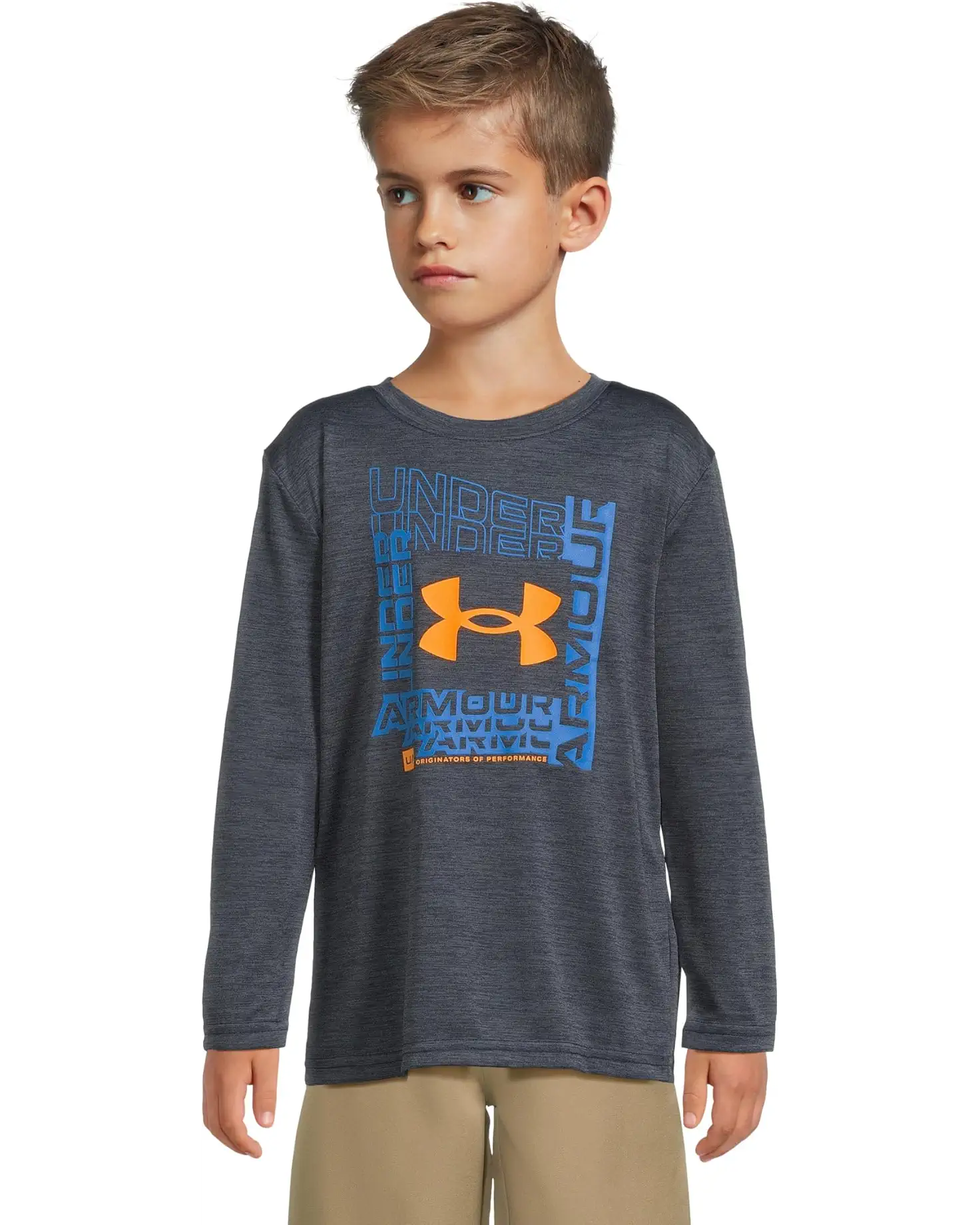 • Revamp your wardrobe by adding to it the Under Armour® Kids Logo Frame Twist Tech Long Sleeve Tee. The pull-on style breathable tee features a crew neck, long sleeves, UA graphic at the chest, and a straight hem.