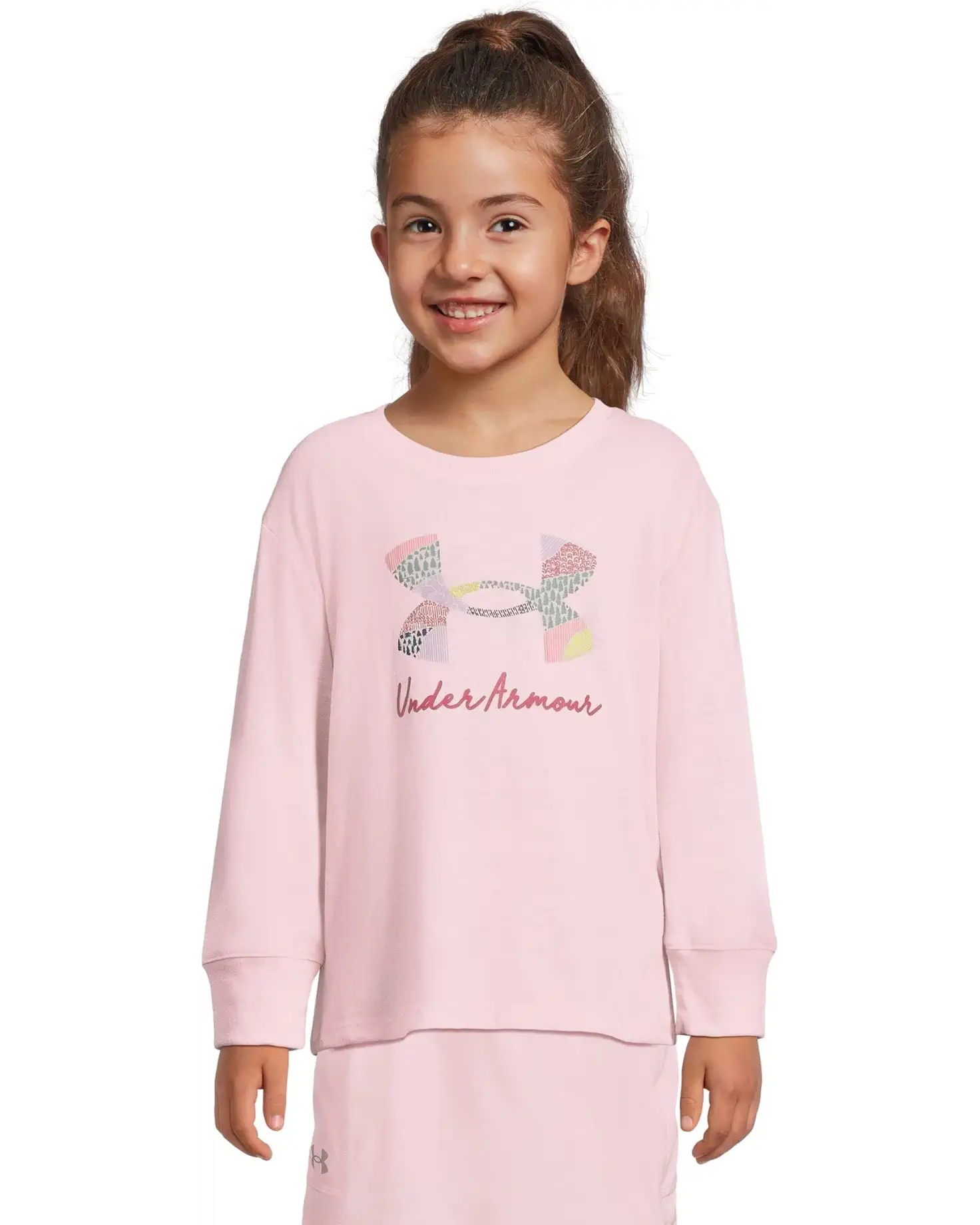 • The Under Armour® Kids Mtn Range Logo Tee blends casual comfort with a touch of style. The pull-on breathable style tee features a crew neck, long sleeves with ribbed cuffs, UA graphic print at the chest, and a straight hem.