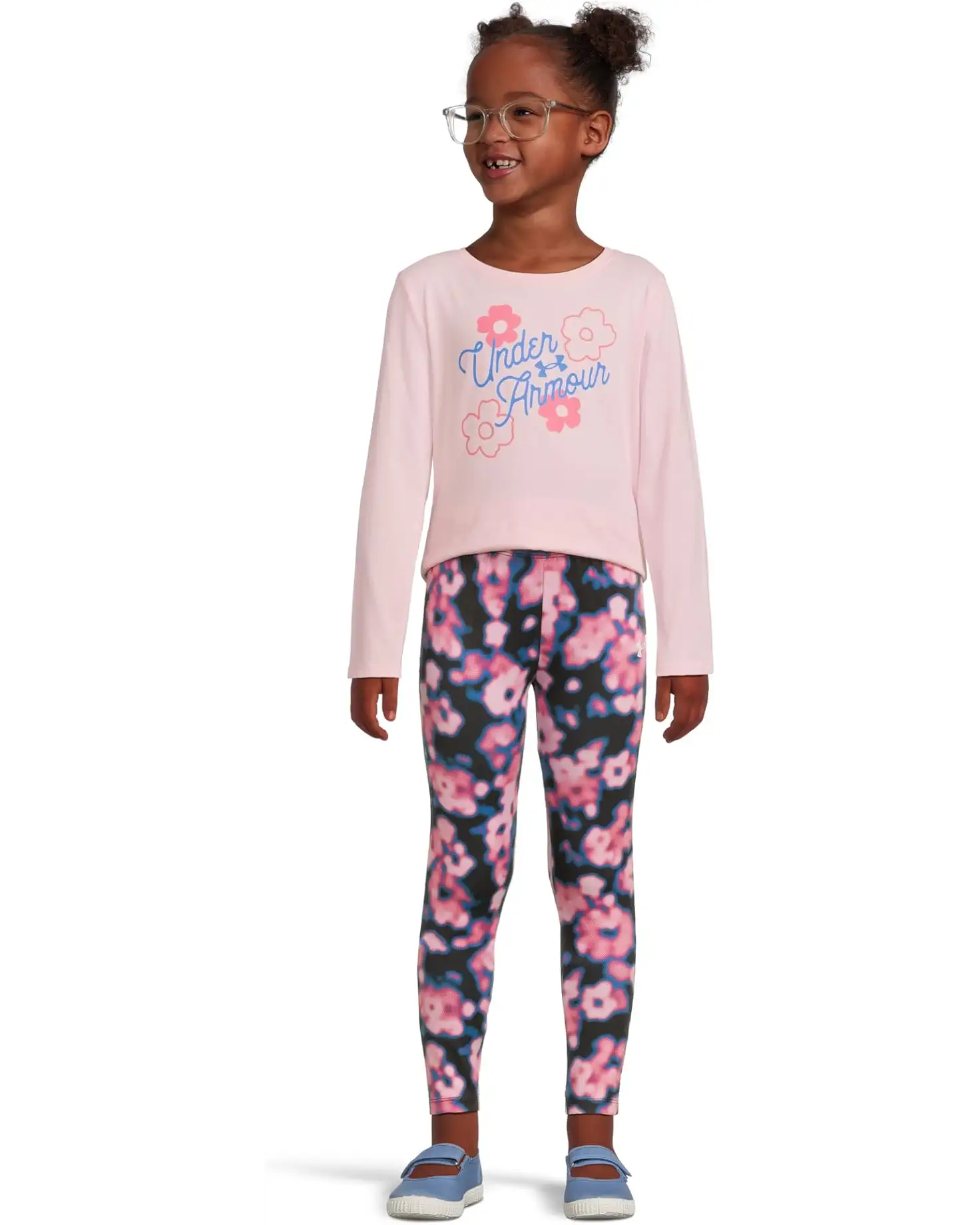 • Empowered for play and built for performance, these printed leggings are made of circular knit stretch jersey for free movement, set with a cool cotton-blend tee from Under Armour®. This set features a top with a crew neckline, long sleeves, graphic print on front, and a curved hemline, while the bottoms offer a pull-on style with an elastic waist.