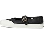 - With a simple buckle and strap, Vans™ Mary Jane silhouette makes the iconic design more casual. This shoe features an adjustable buckle closure strap, round toe silhouette, a sturdy canvas upper, leather lining, and a rubber insole.