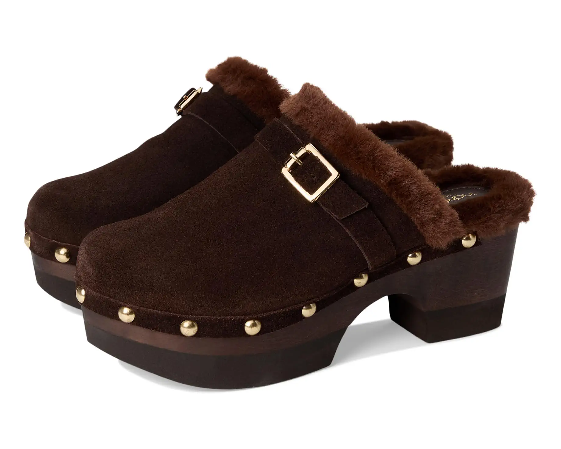 • Slip into the effortless charm of the Andre Assous™ Orla clogs. Crafted from smooth suede leather upper, this modern take on the classic clog features a gleaming buckle and stud accents for added flair. Designed for comfort with a lightweight EVA outsole and a cushioned foam insole, Orla brings elevated ease to everyday dressing.