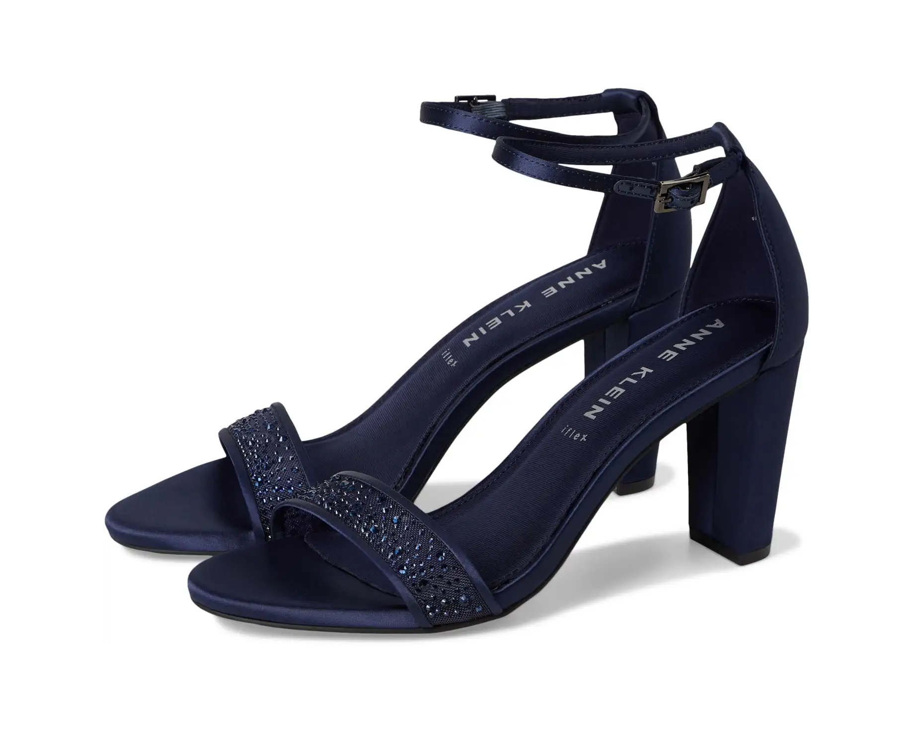- Stun everyone with your luxurious style wearing the Anne Klein® Kourtney-C Heels. The open almond toe heels are crafted with a polyurethane upper, lining, and insole. The tall stiletto heel and mesh front strap with embellishments adds a stylish touch. Plus, the ankle strap and buckle closure ensures a secure fit.