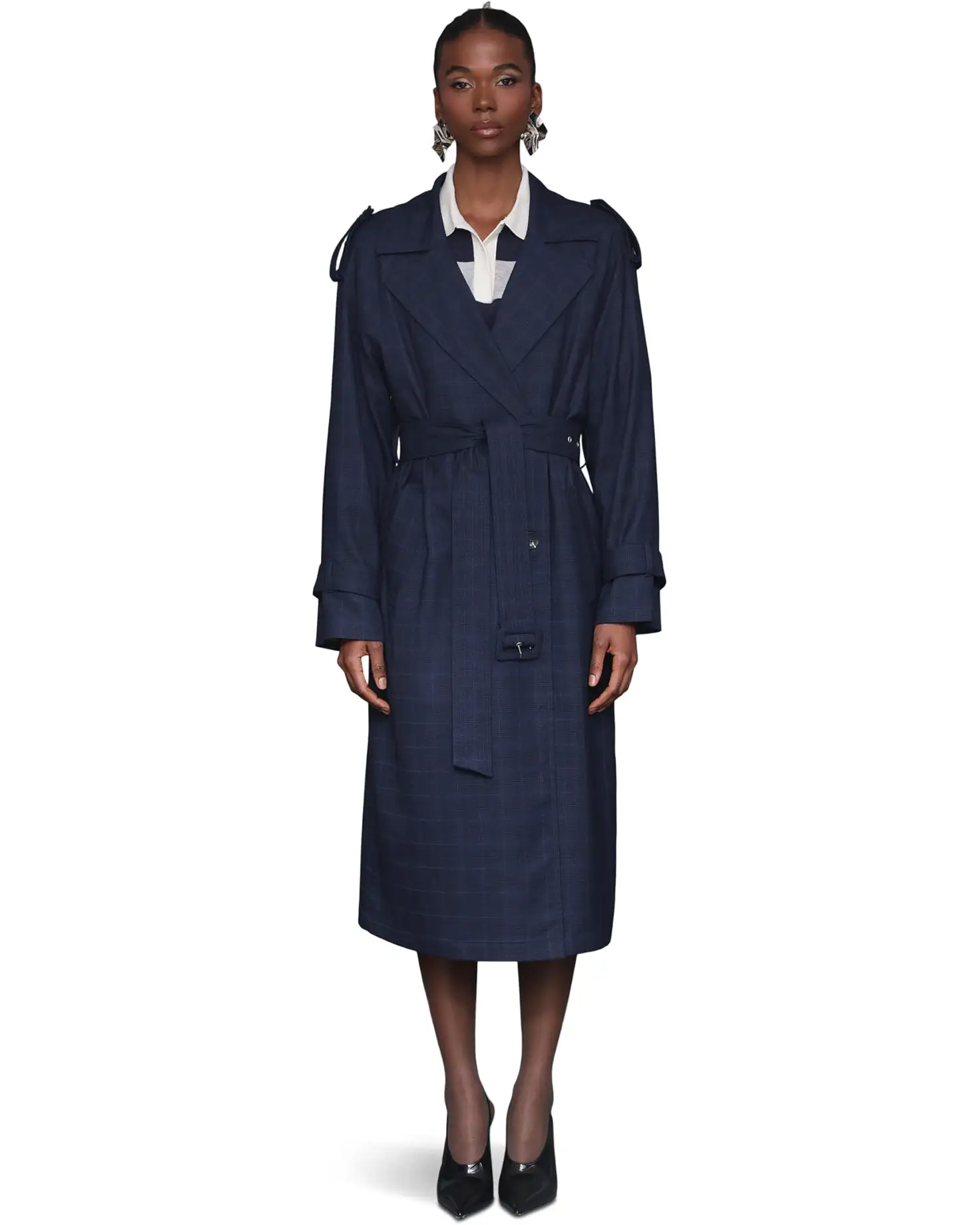 • An always and forever outerwear staple, the Avec Les Filles™ Blanket Stitch Coat features epaulets that emphasize the oversized cut and a monochrome plaid pattern that subtly adds depth and texture to the look. The blanket stitch detailing along the seams lends an artisanal finish, while the double-breasted front, notched lapel collar, and removable tie belt offer classic structure with modern versatility.