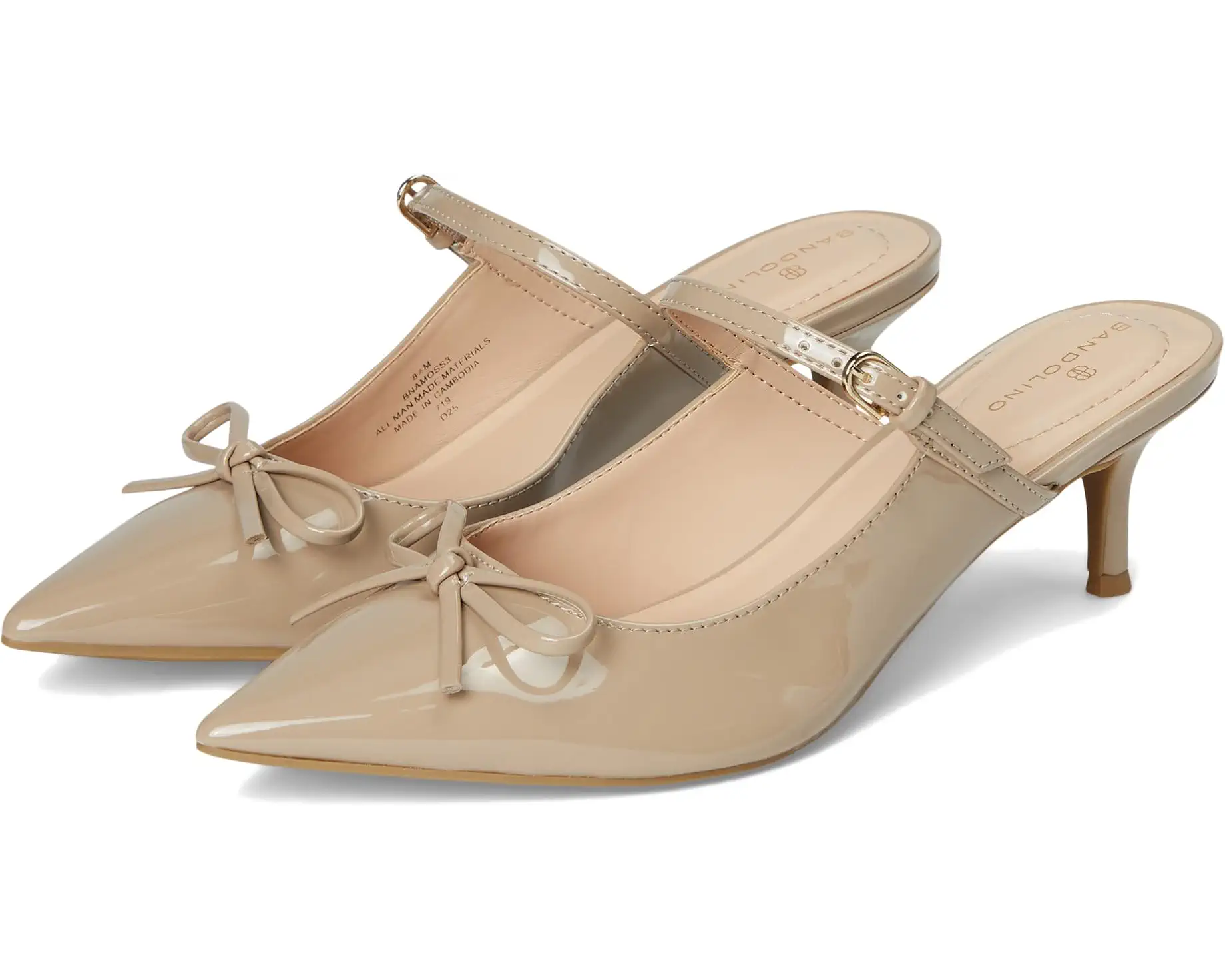 • The Bandolino® Amoss Dress Mules are the must have of the season! Featuring a slip-on silhouette, bow detailing on the patent faux leather upper, and a pointy toe, these will be your go to mules of the season. The man-made lining and foam footbed ensures comfort with every step and the kitten heel revamps the look.