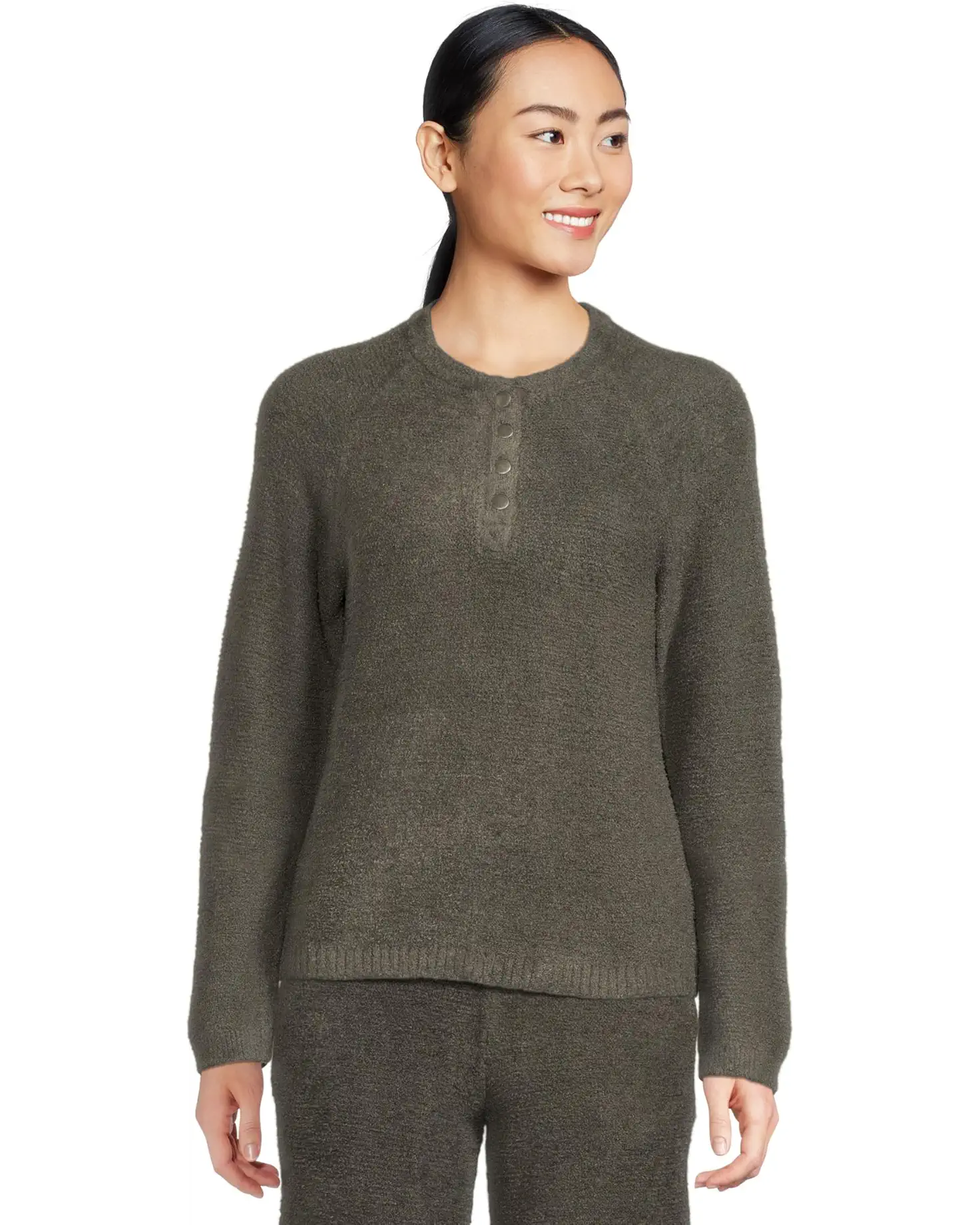 - Stay comfortable and cozy with the Barefoot Dreams® Cozychic Lite® Textured Raglan Sleeve Henley Top. The CozyChic Lite® is crafted from a luxurious, buttery soft knit spun from ultra-fine nylon and rayon. Made with an allover garter stitch, this pullover includes a Henley neckline with quarter-snap button closure, long raglan sleeves, and ribbed cuffs & hem. This style hits at the high hip and has rib finishes.