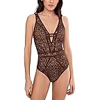 - The BECCA® Classic Color Play Crochet Plunge One-Piece has an amazing fit and feel with sheer insets of crochet and has a striking tan lining. The shelf bra comes with removable cups, adjustable straps, sheer crochet insets, wait inset, and a tie-back closure.