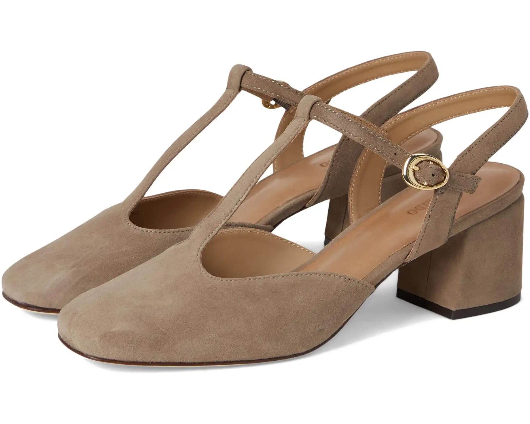 - The Bernardo® Romi is designed to elevate your everyday style with its classic T-strap silhouette and a secure buckle closure. This pump is crafted from supple leather and set on a block heel for stable, all-day wear. The square toe adds a modern edge, while the leather insole and outsole ensure a luxurious feel with every step.