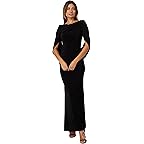 - You're sure to catch some attention at your next formal event in the Betsy & Adam™ Long Jersey Rouch Drape Back Sleeve dress, featuring elbow-length sleeves with wraparound drape.