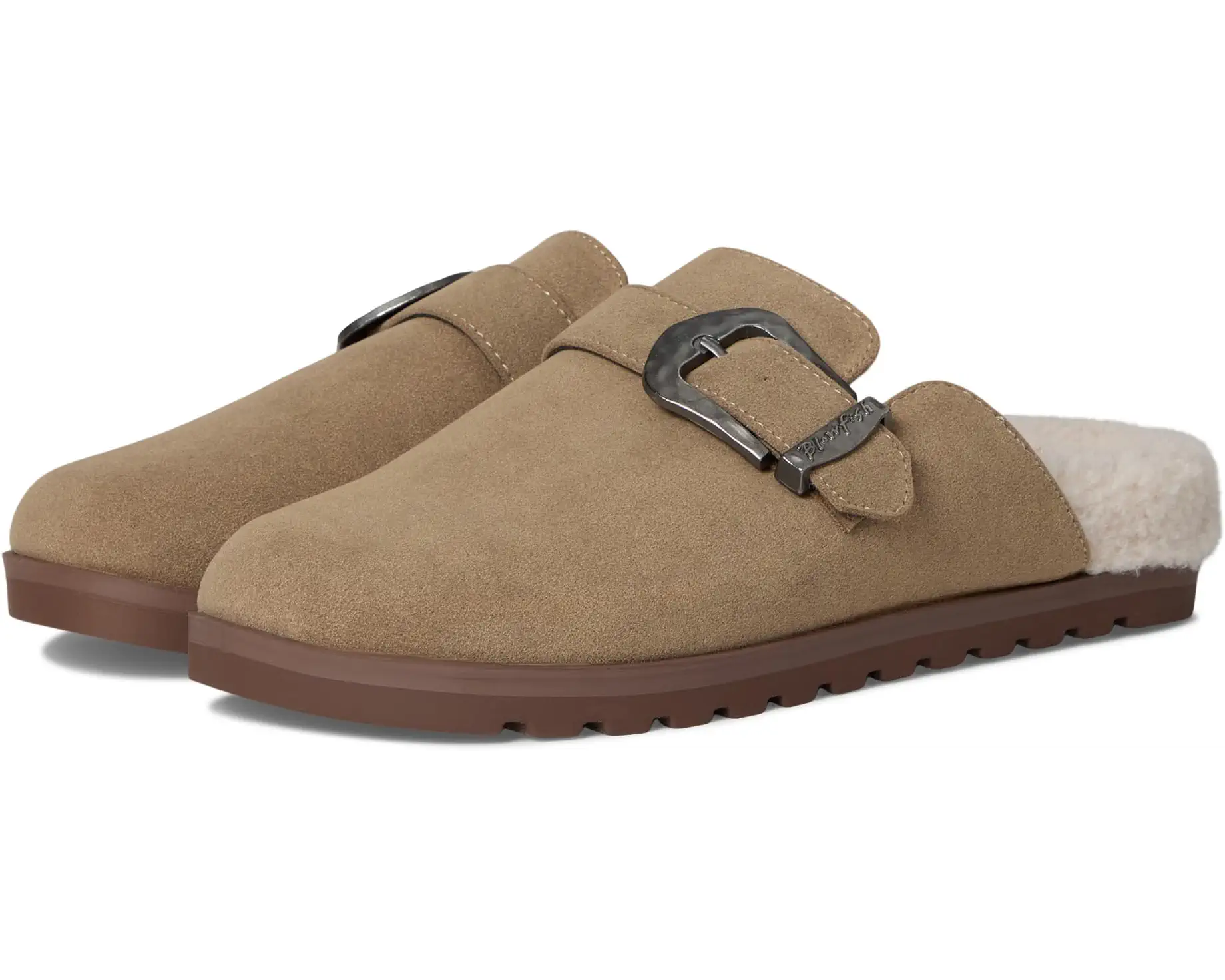 • Feel cozy and look carefree with the Blowfish Malibu® Sienna Cozy mules. Their faux suede upper features a cozy faux fur lining and a strap with a decorative buckle accent. These slip-on mules are made of an EVA insole and polyester lining. Comfortable and cozy, these faux suede mules keep your feet warm all day.