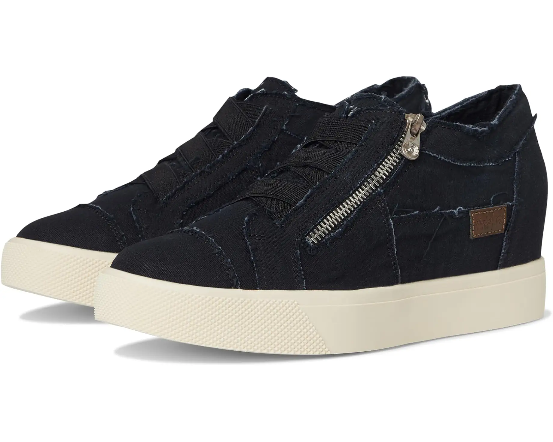 - Give your SoCal style a lift in the oh-so-cool Zayla women's casual wedge sneaker from Blowfish® Malibu. Features include a hidden internal wedge, zippered closure, and crisscrossing stretch gore straps for easy on and off. Made from canvas upper, cotton lining, EVA insole, and synthetic rubber outsole.