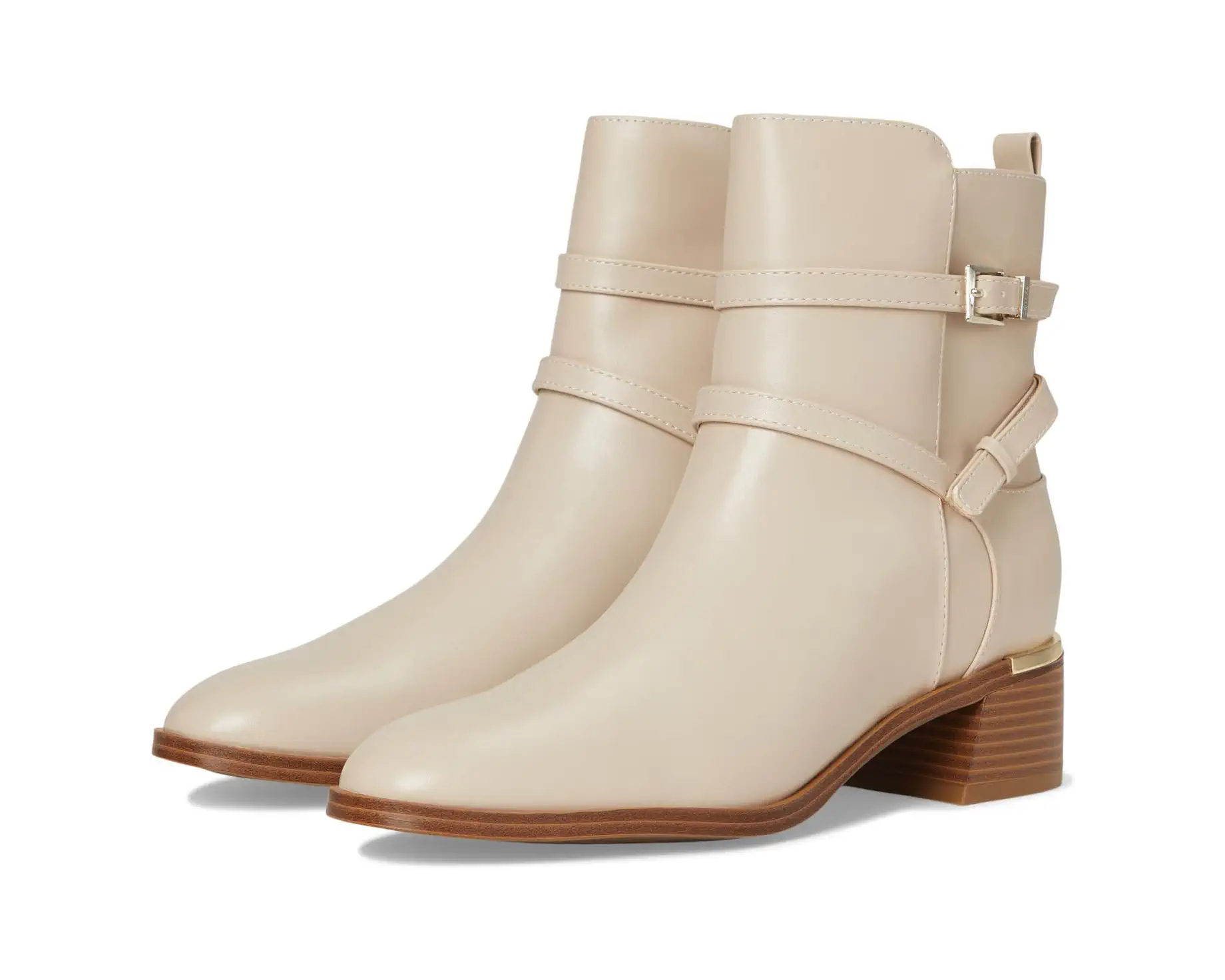 - Chic and cool, the Calvin Klein® Jansen boot will surely turn heads. It features a mid block heel, adjustable strap and sleek design. With an almond toe shape and zippered side closure, this boot is the perfect wardrobe staple.